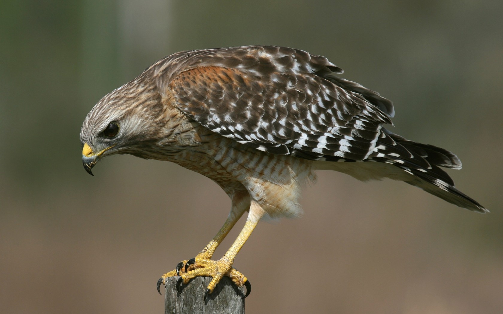 Скачать обои для рабочего стола Птица согнyвшись на столбике и фото
