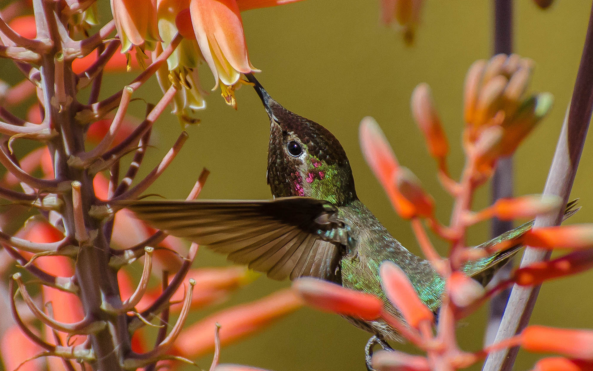 Скачать обои для рабочего стола Птичка медоедка в листве и фото