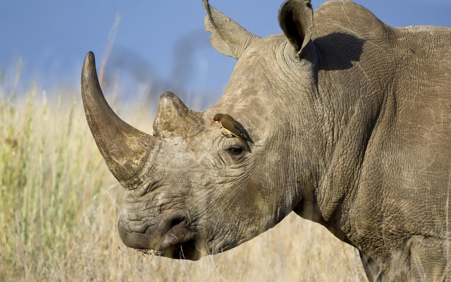 Скачать обои для рабочего стола Птичка на носороге и фото
