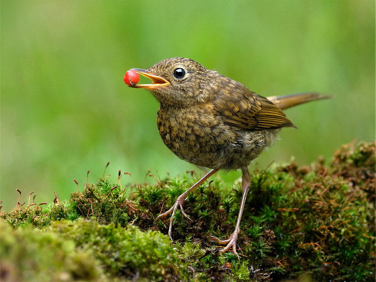 Скачать обои для рабочего стола Птичка с ягодкой в клюве и фото