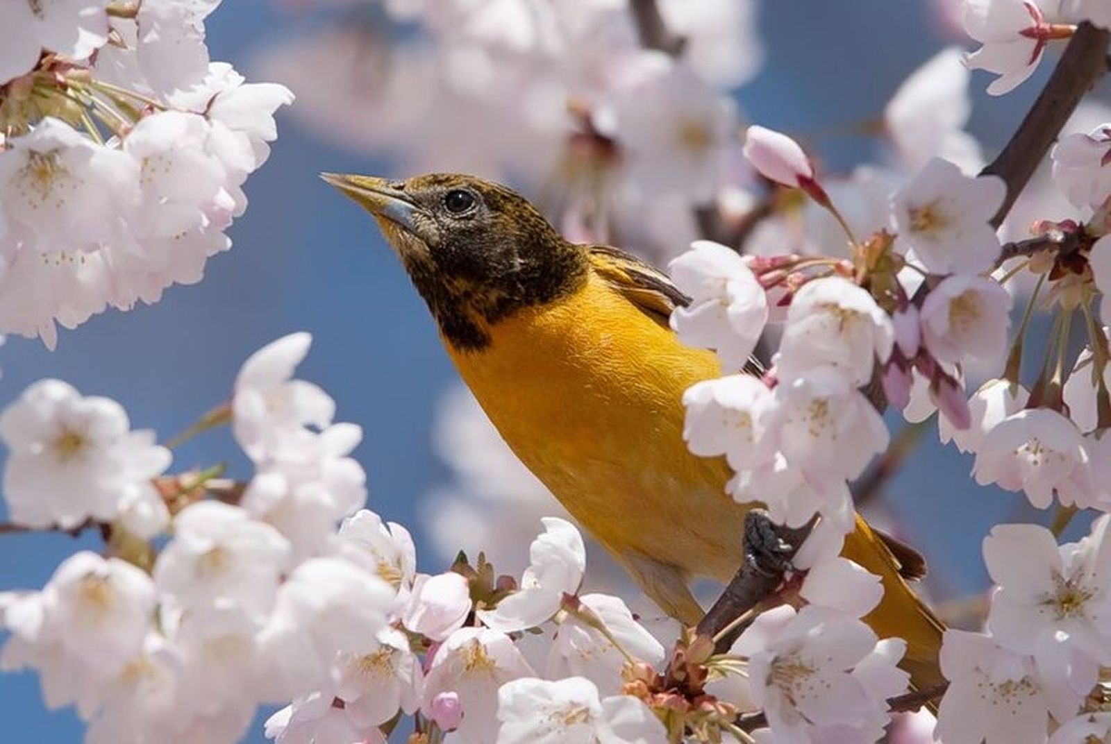Скачать обои для рабочего стола Птичка в цветах и фото
