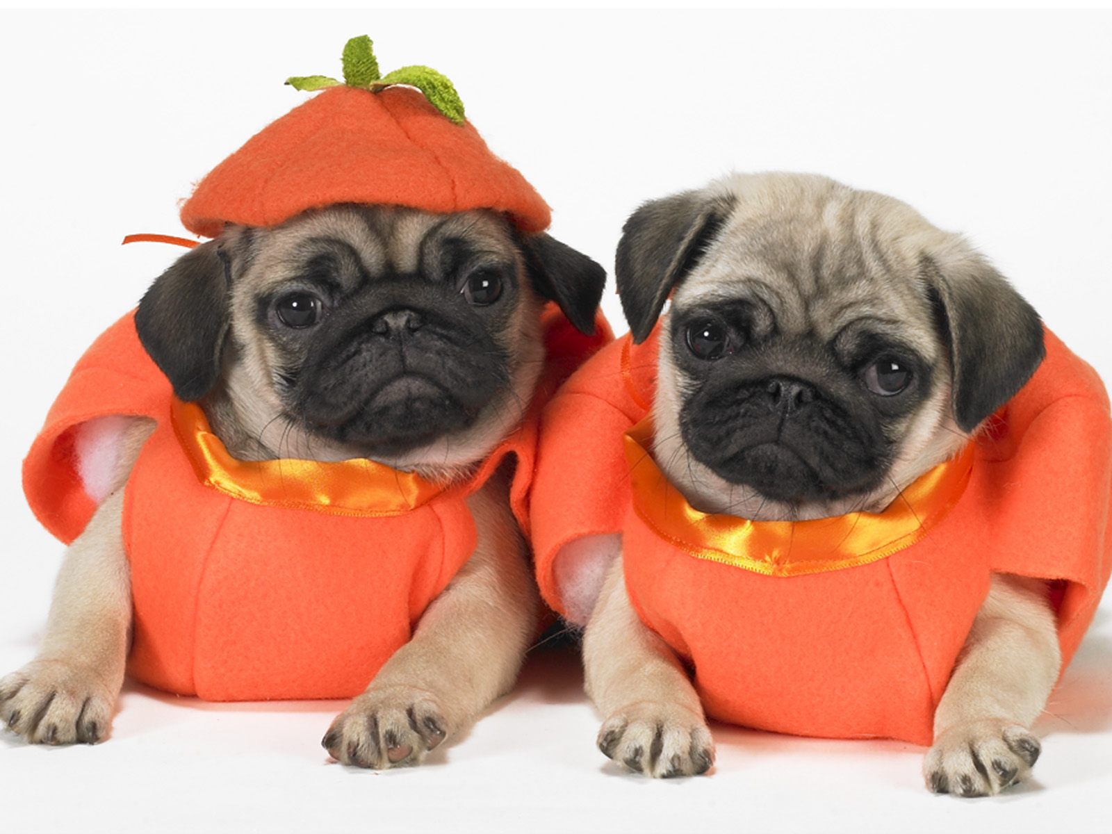 Скачать обои для рабочего стола Pumpkin Pugs и фото