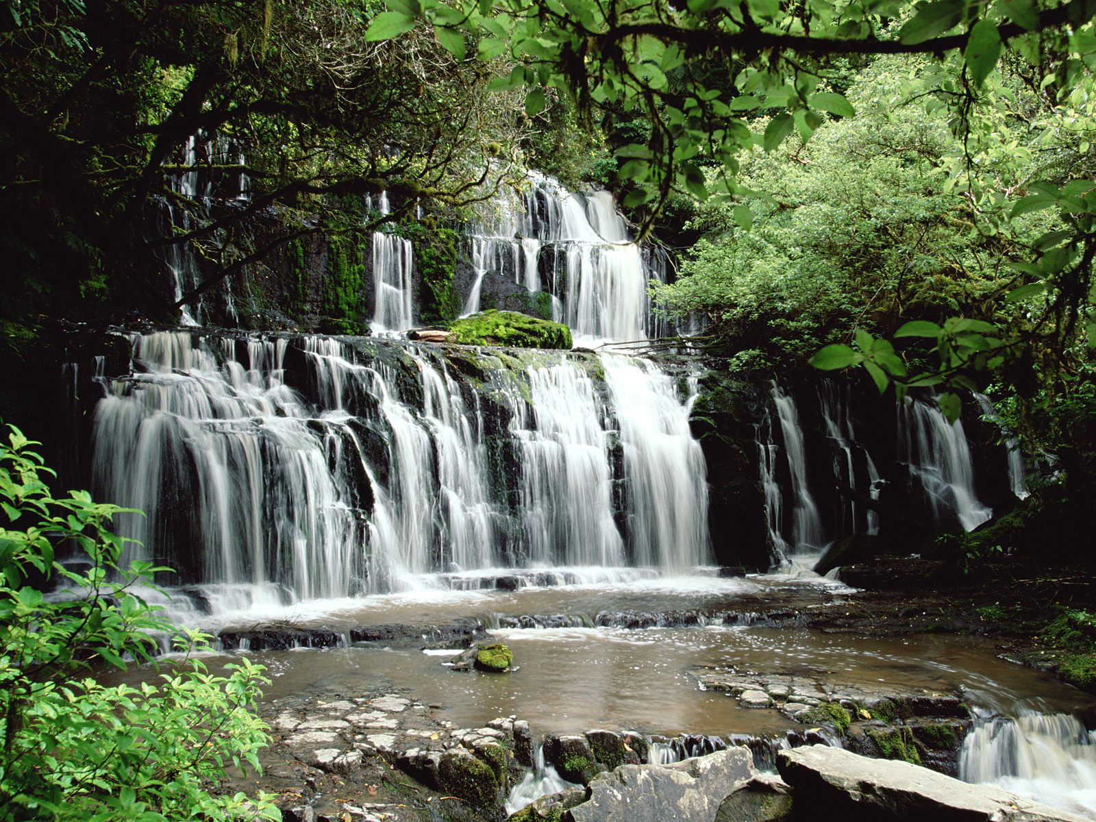 Скачать обои для рабочего стола Purakaunui Falls, The Catlins, South Island, New Zealand и фото