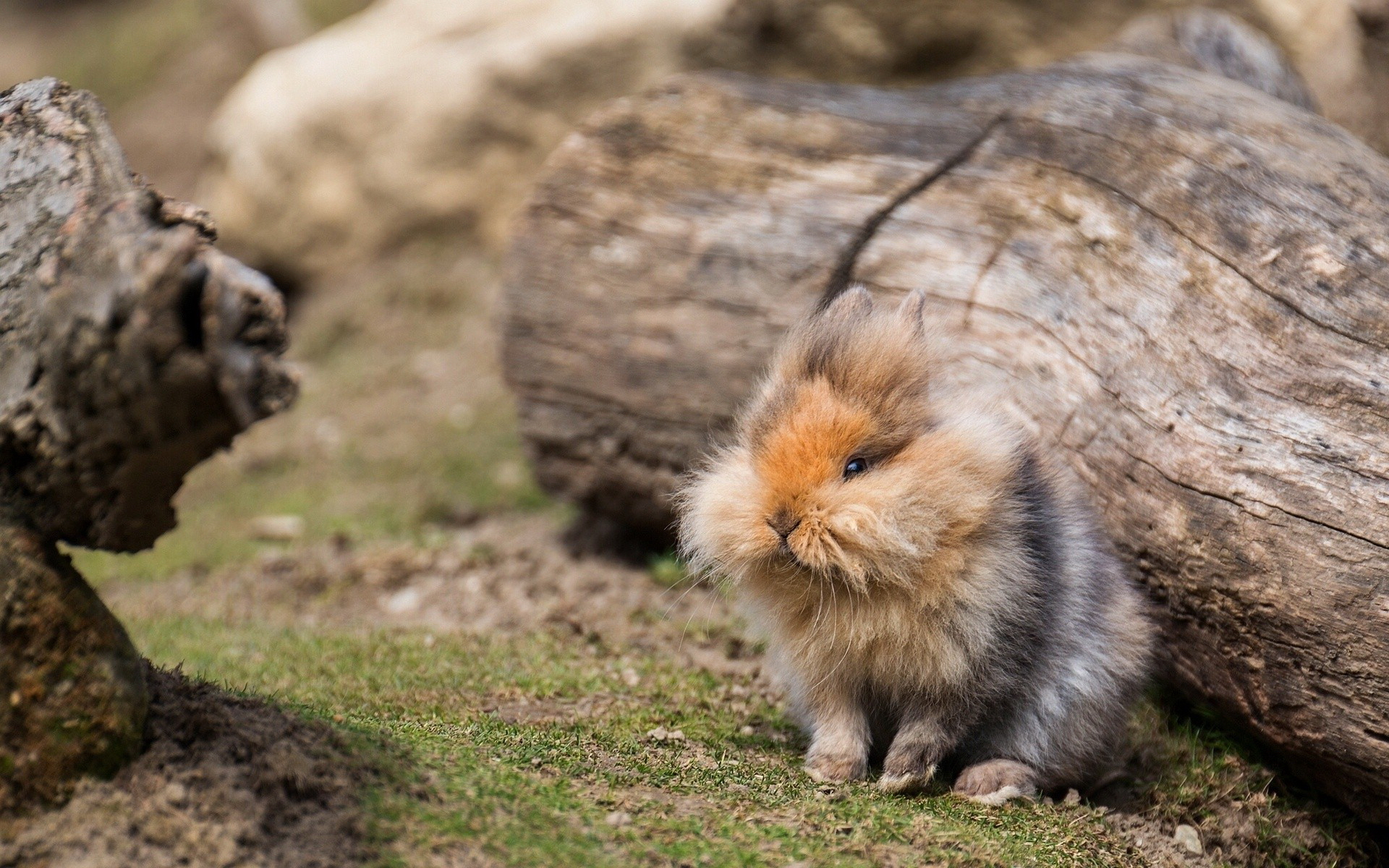 Скачать обои для рабочего стола Пушистый маленький крольченок и фото