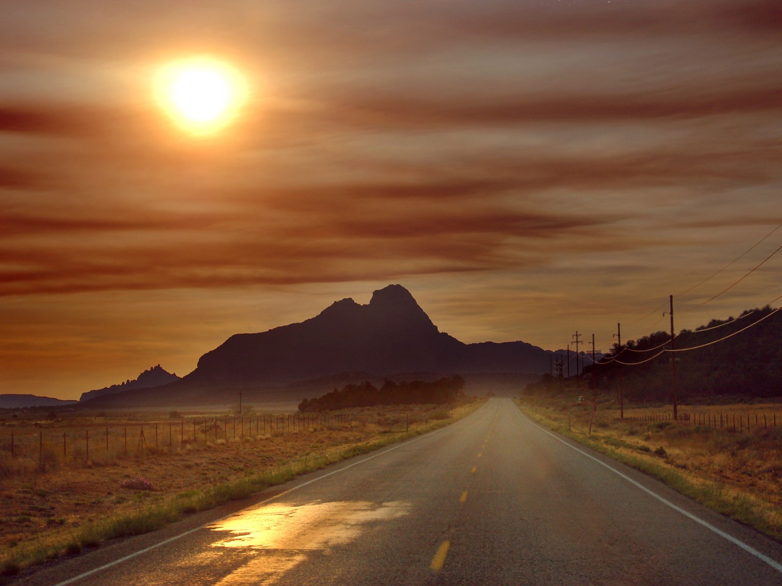 Скачать обои для рабочего стола Пустынная дорога в ненастную погоду и фото