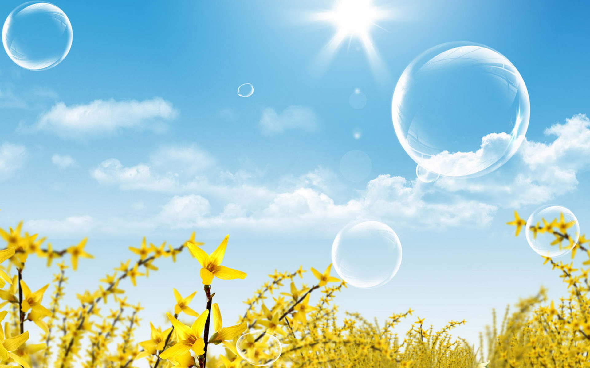 Скачать обои для рабочего стола Пузыри над кустарниками с желтым цветом и фото