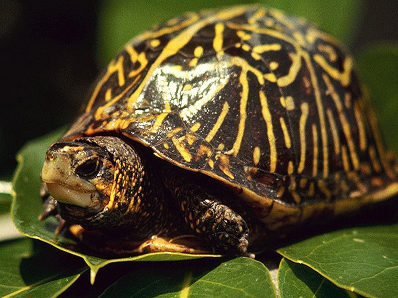 Скачать обои для рабочего стола Пятнистая черепаха на листе дерева и фото
