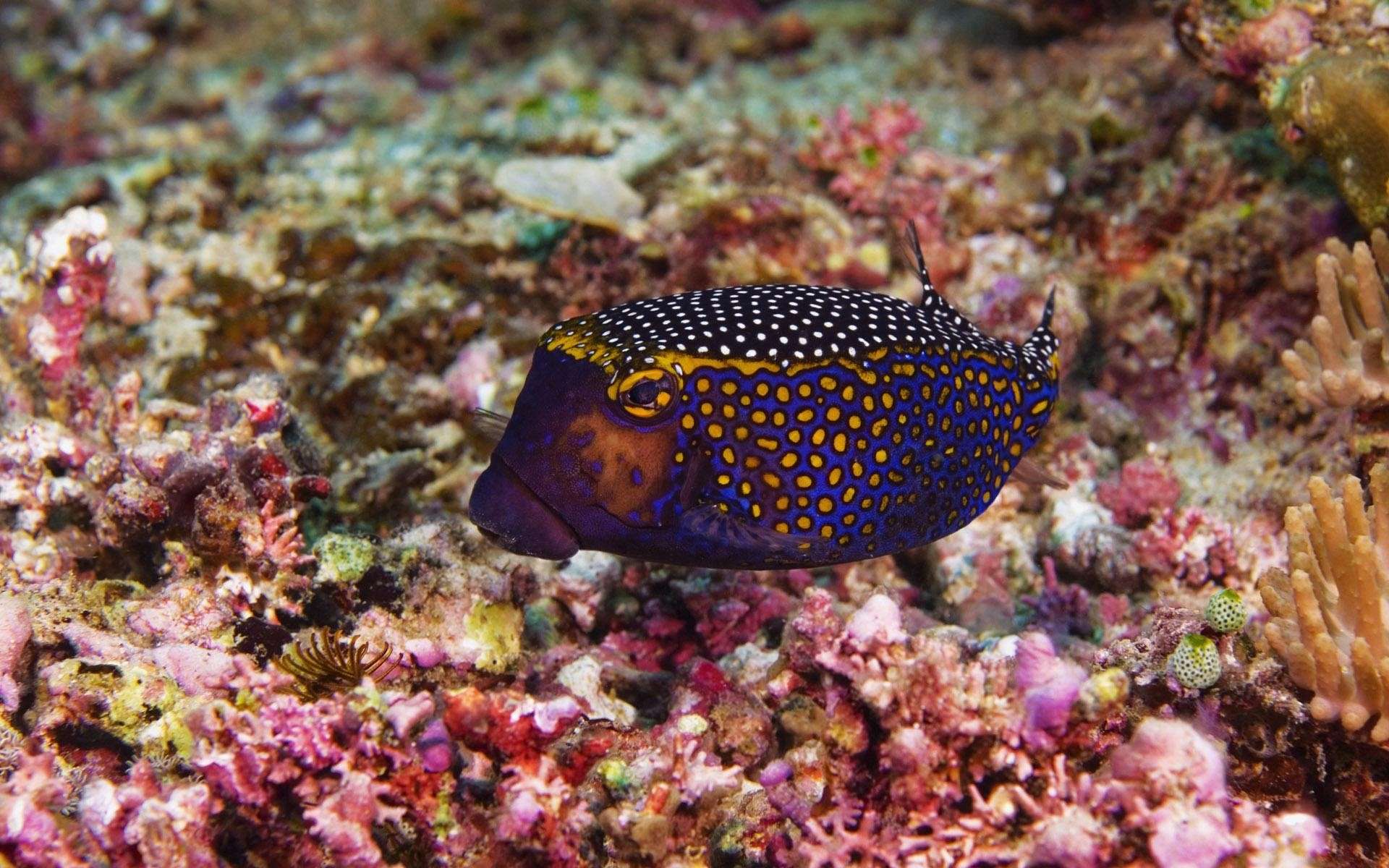 Скачать обои для рабочего стола Пятнистая рыбка на дне океана и фото