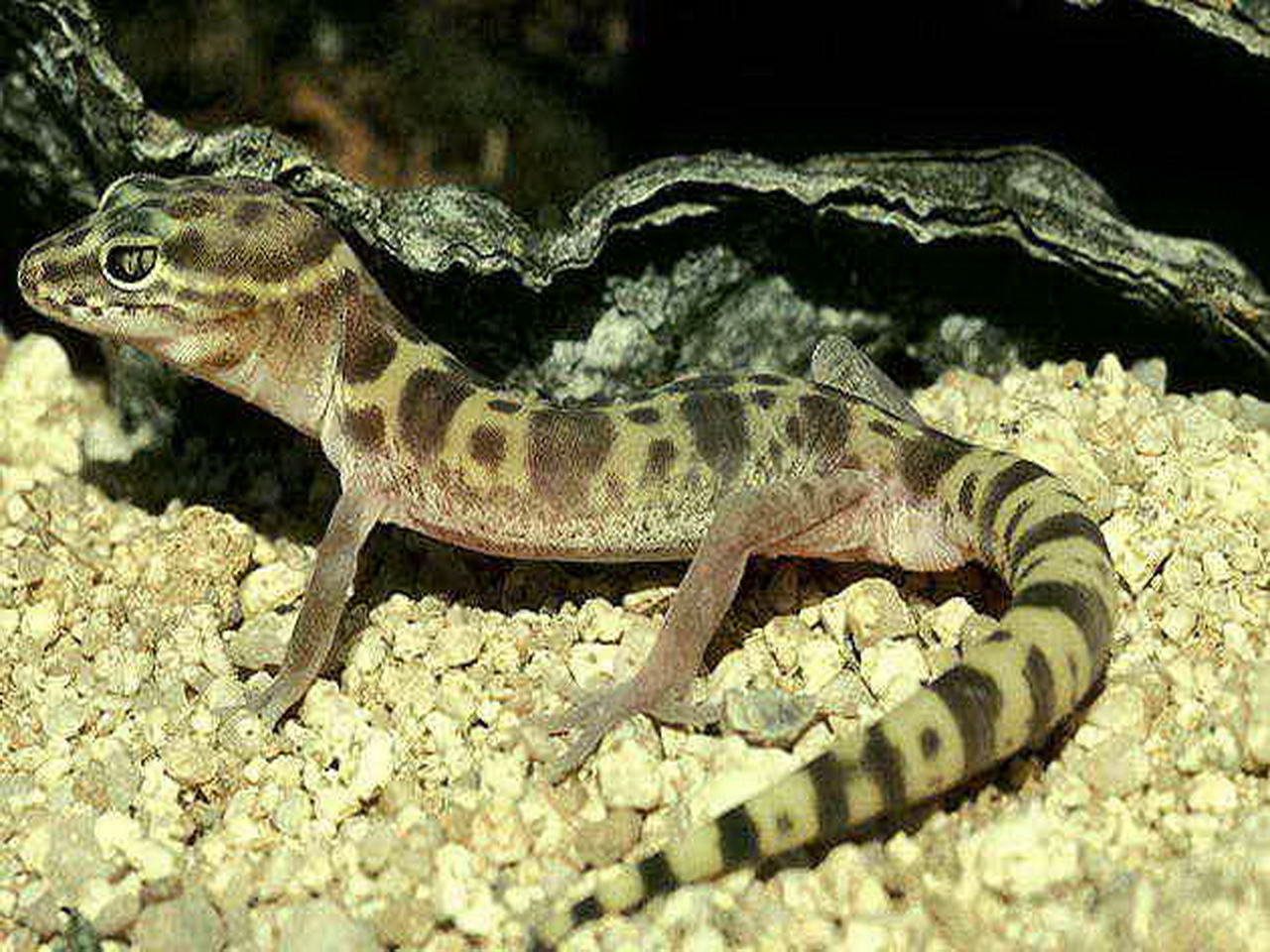 Скачать обои для рабочего стола Пятнистая ящерица на каменистом грунте и фото