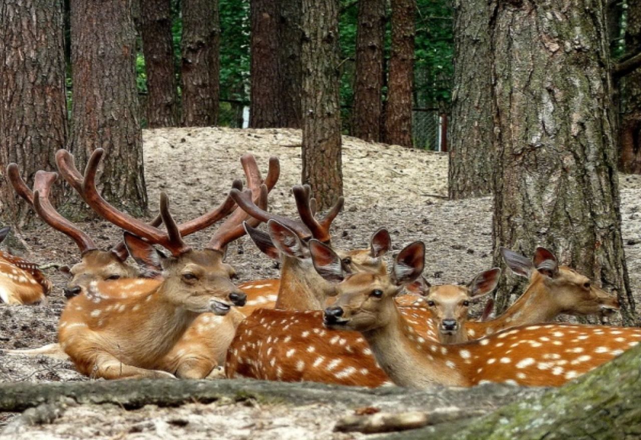 Скачать обои для рабочего стола Пятнистые олени на отдыхе и фото