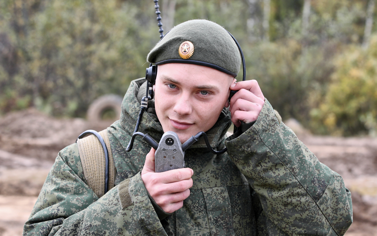Скачать обои для рабочего стола Радист на учениях передаёт сведения и фото