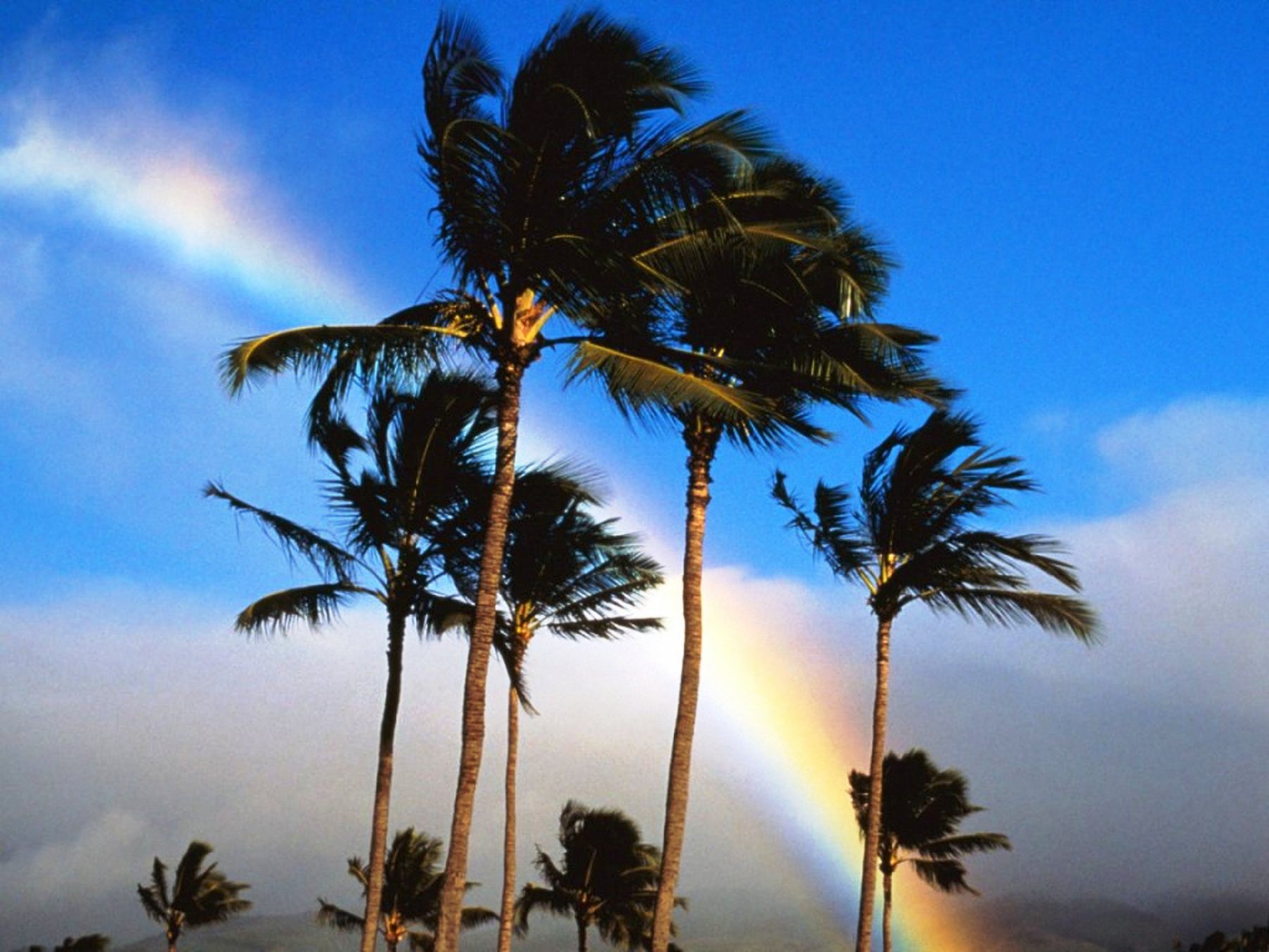 Скачать обои для рабочего стола Радуга и пальмы и фото
