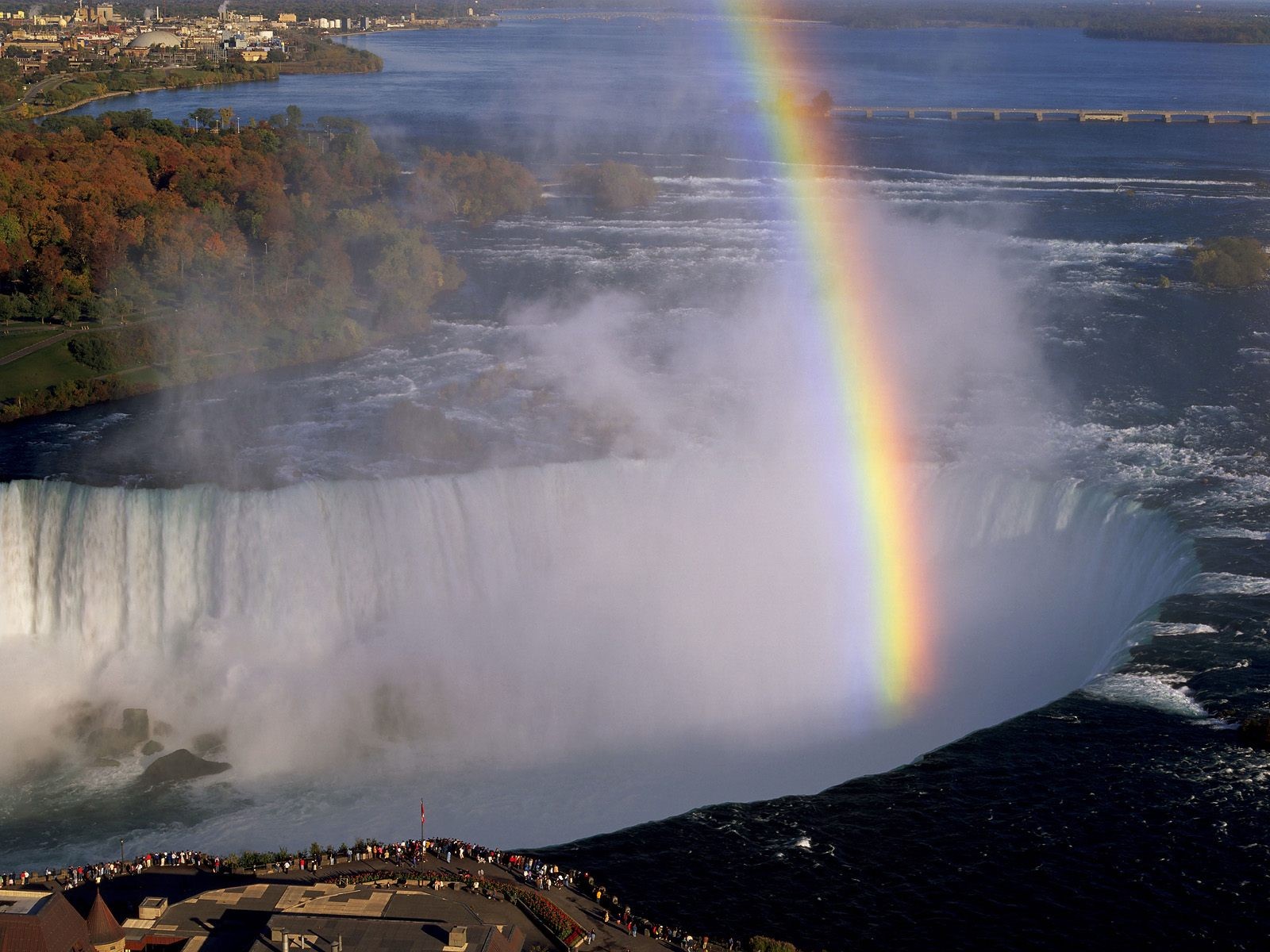 Скачать обои для рабочего стола Радуга в водопаде и фото