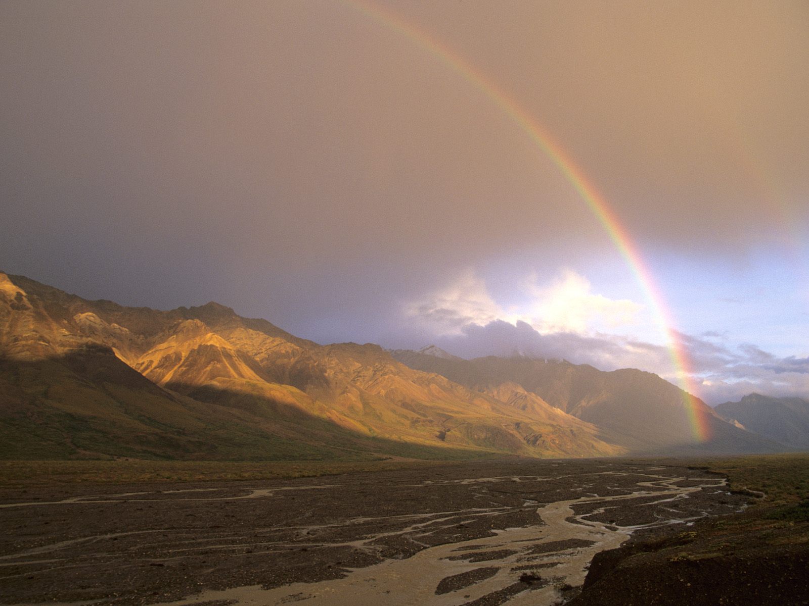 Обои Rainbow Over the Toklat Valley, Alaska Range, Denali
