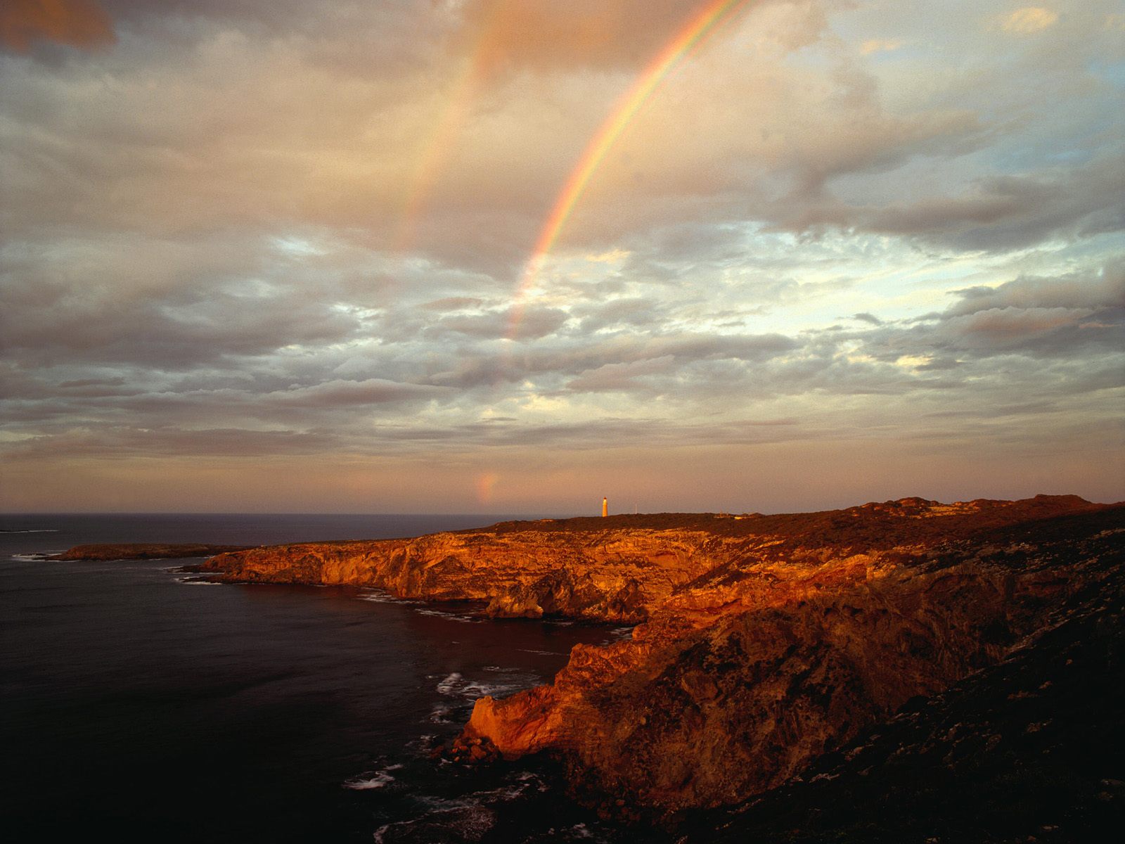 Похожие обои на Rainbows at Sunset Over Cape du Couedic, Flinders Chase National Park, Kangaroo Island, Australia: