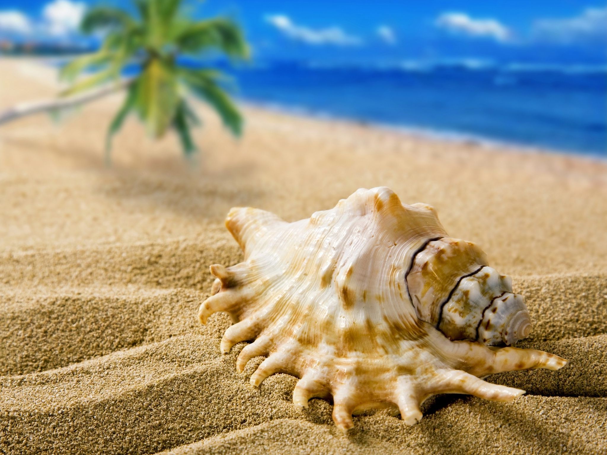 Скачать обои для рабочего стола Ракушка на песке и фото