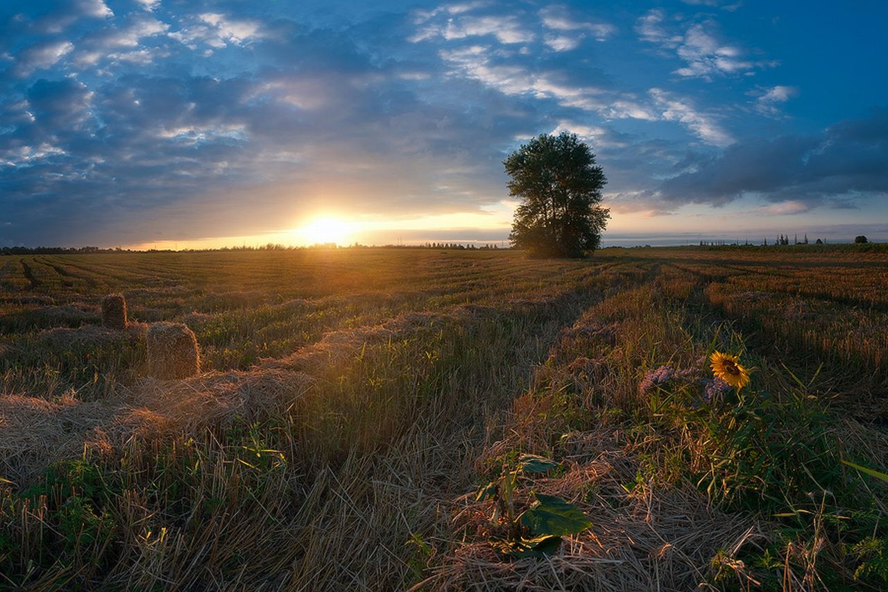 Скачать обои для рабочего стола Рассвет над убранным полем и фото