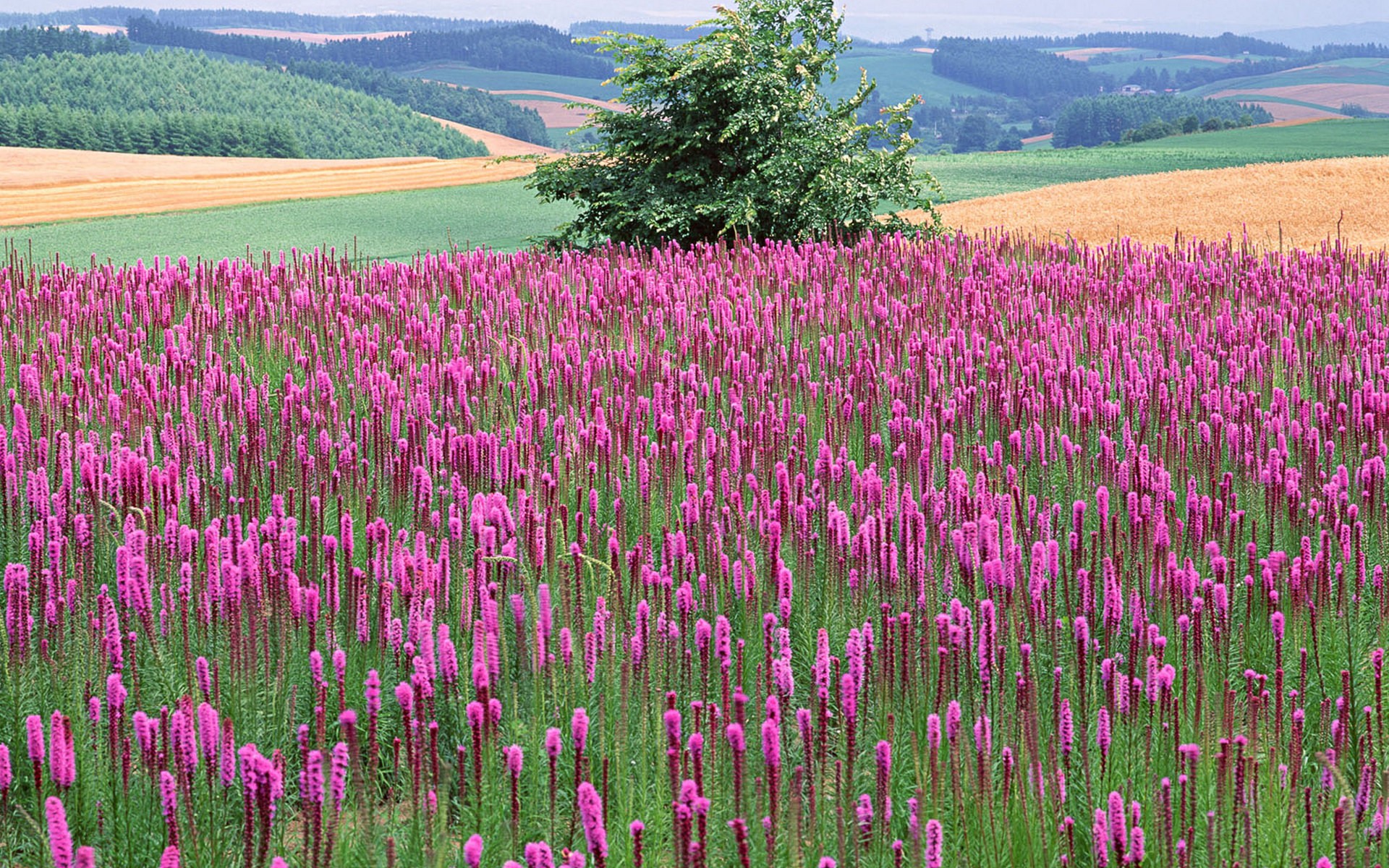 Скачать обои для рабочего стола Растения с фиолетовыми верхушками на поле и фото