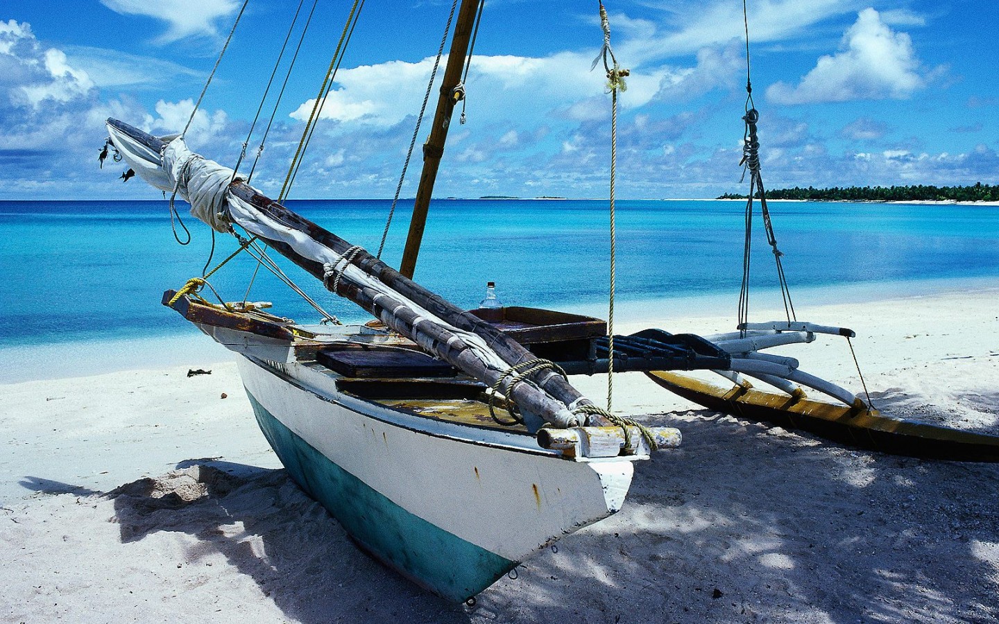 Скачать обои для рабочего стола Разбитая яхта лежит на берегу и фото