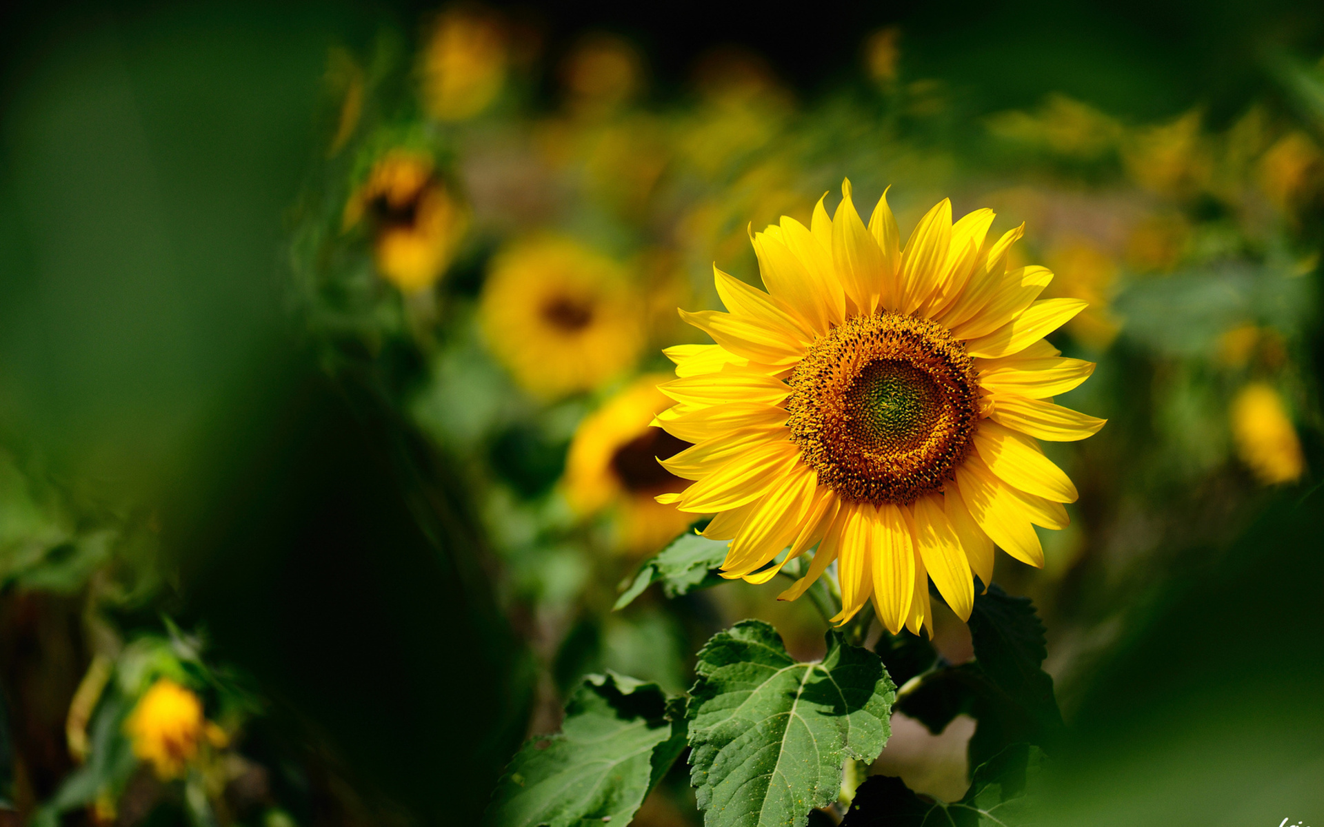 Скачать обои для рабочего стола размытый фон с солнечным подсoлнуxом и фото