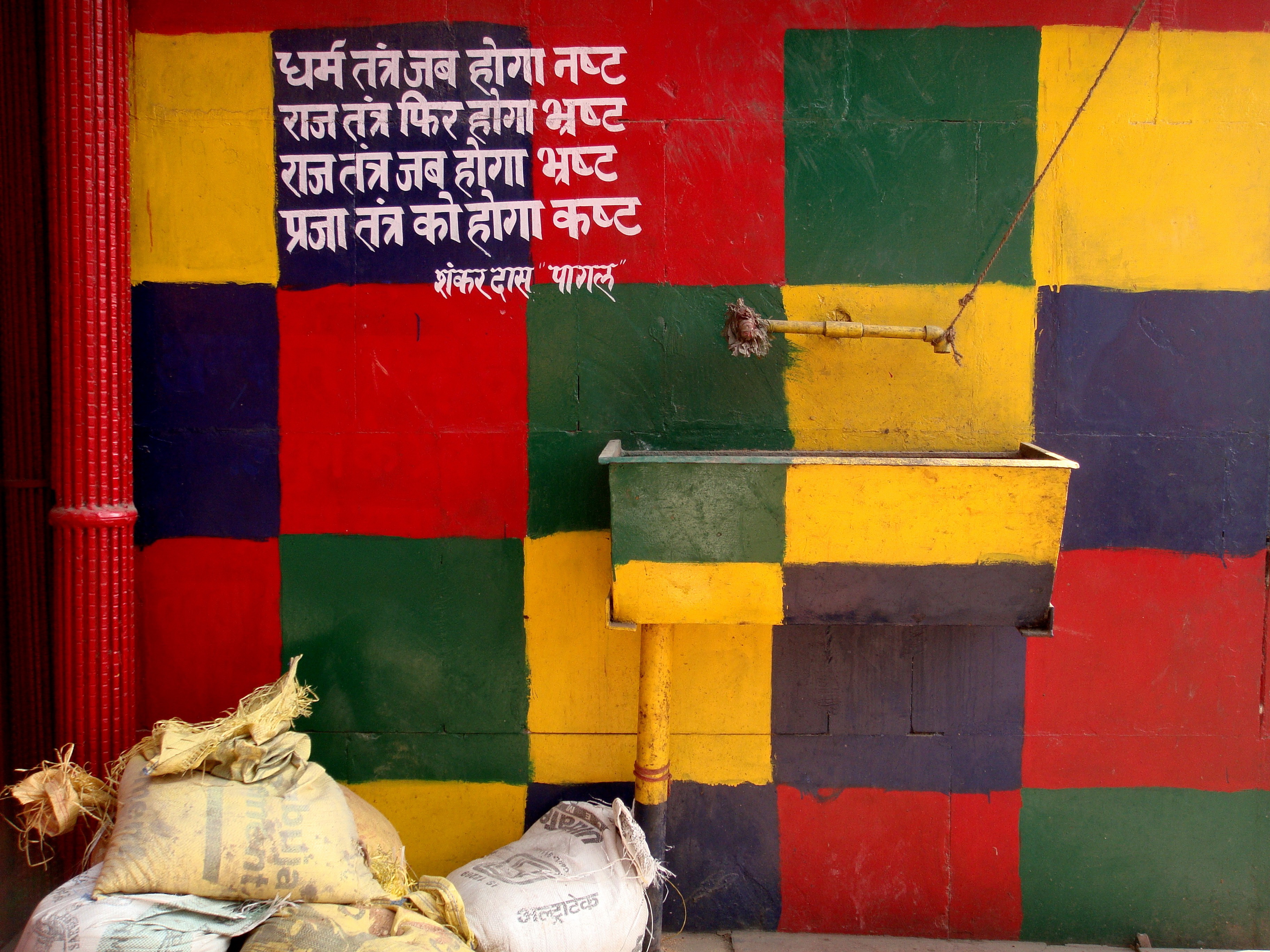 Скачать обои для рабочего стола Разноцветная стена с раковиной и фото