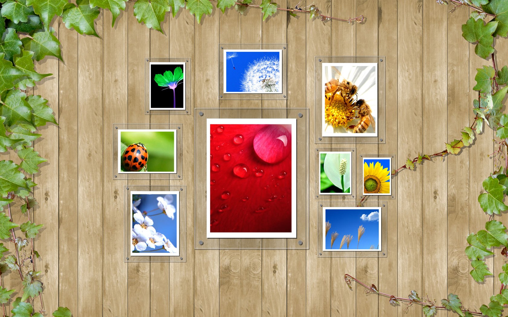 Похожие обои на Разные фотографии различных размеров на деревянном заборе: