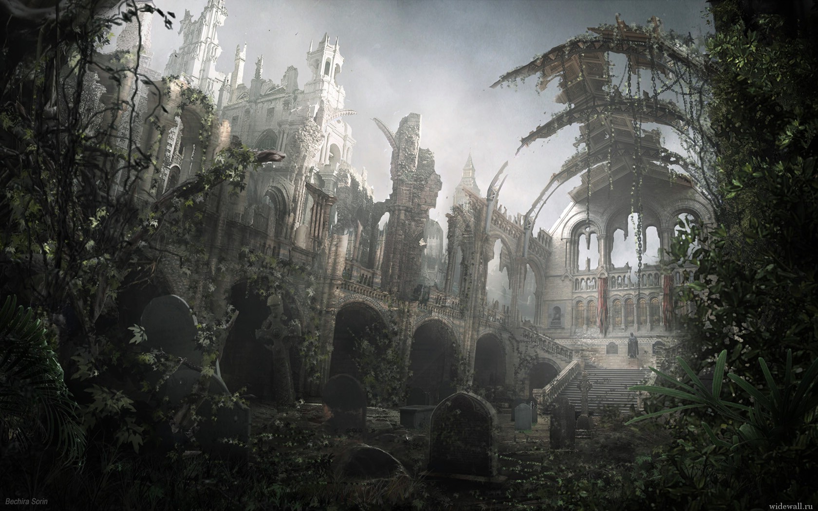 Скачать обои для рабочего стола Разрушеное кладбище и фото