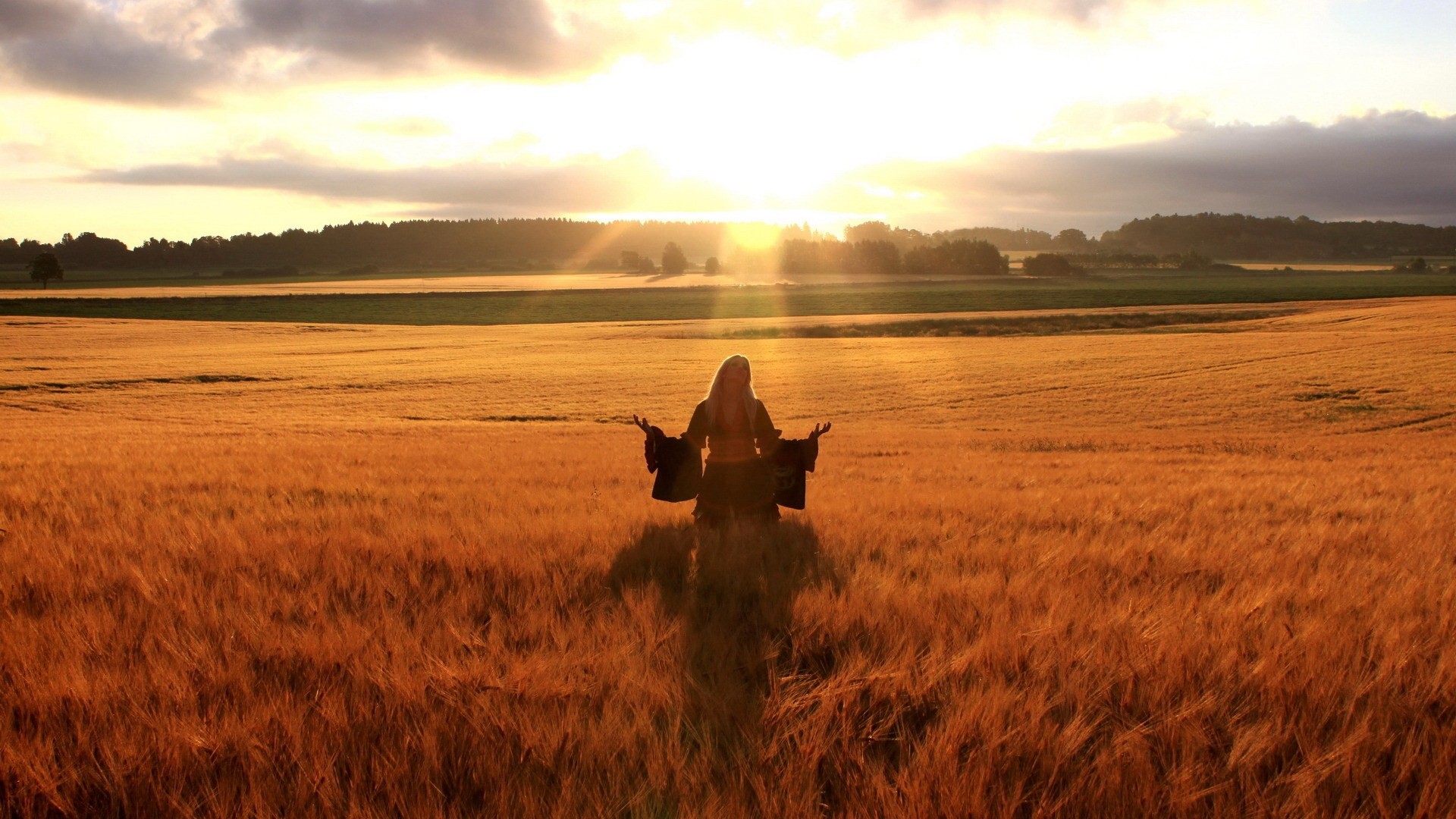 Скачать обои для рабочего стола Развела руки в полe и фото