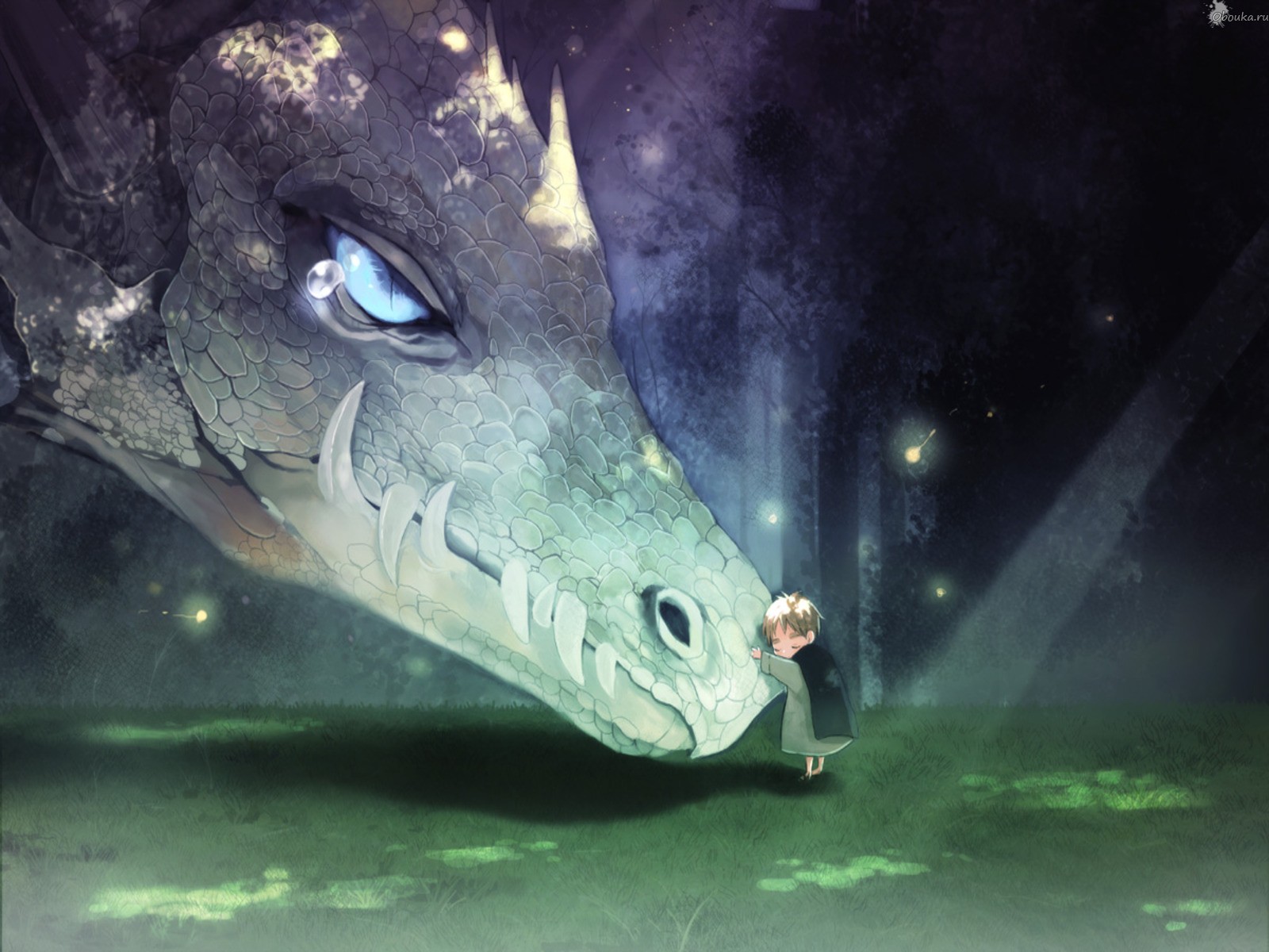 Скачать обои для рабочего стола Ребенок и дракон и фото