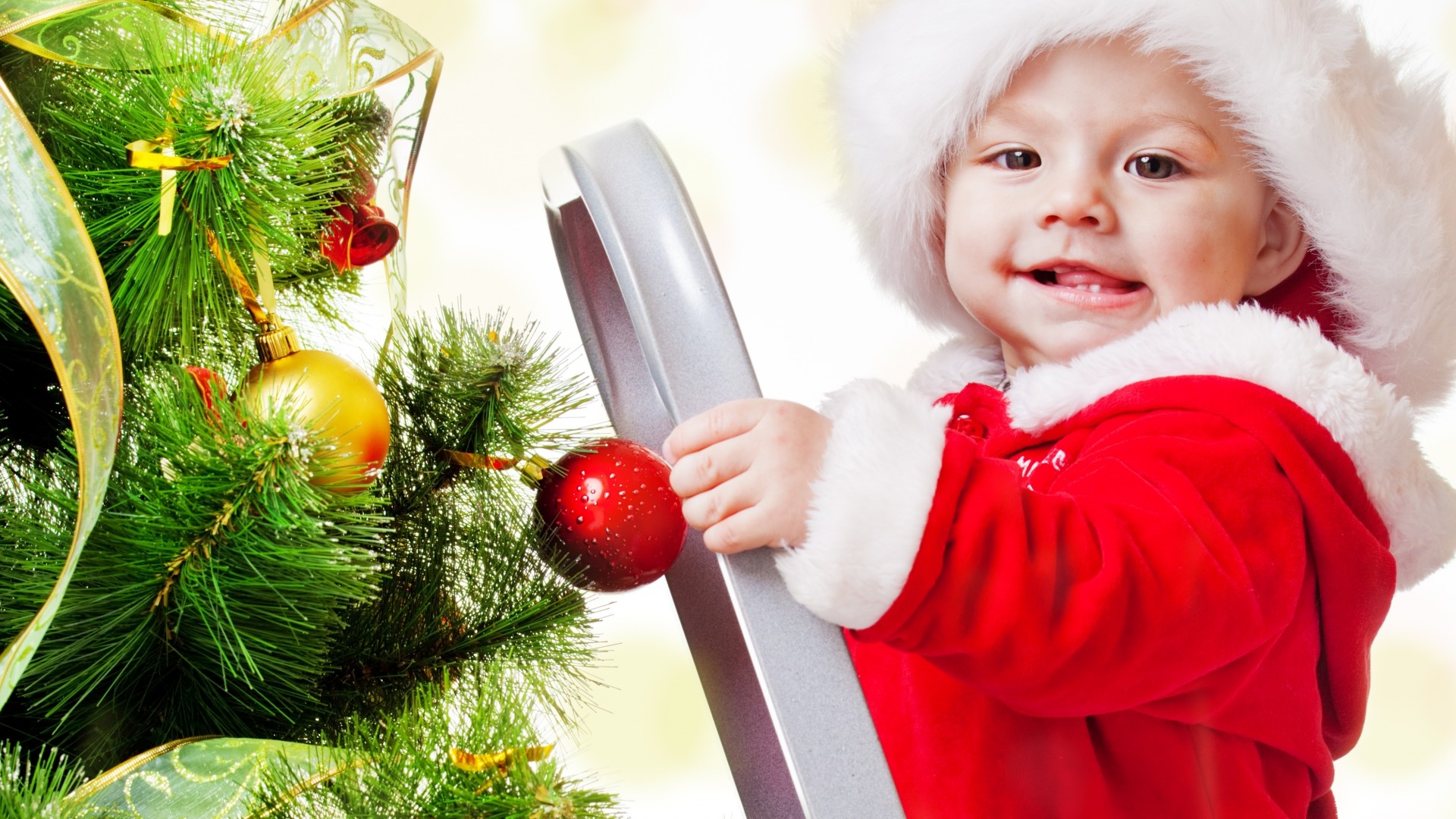 Скачать обои для рабочего стола Ребенок наряжает елку и фото