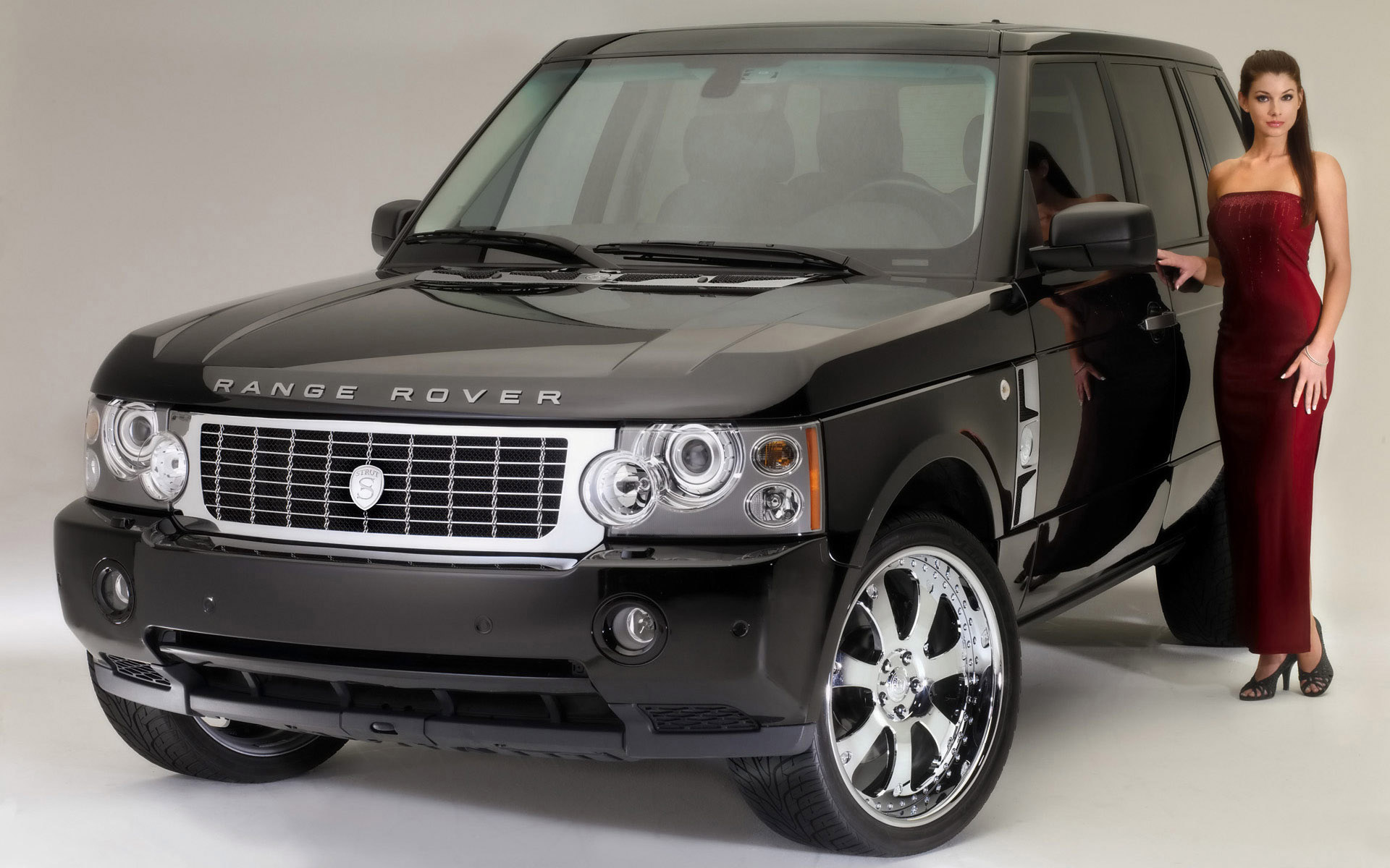 Похожие обои на Рейндж ровер и девушка в красном: