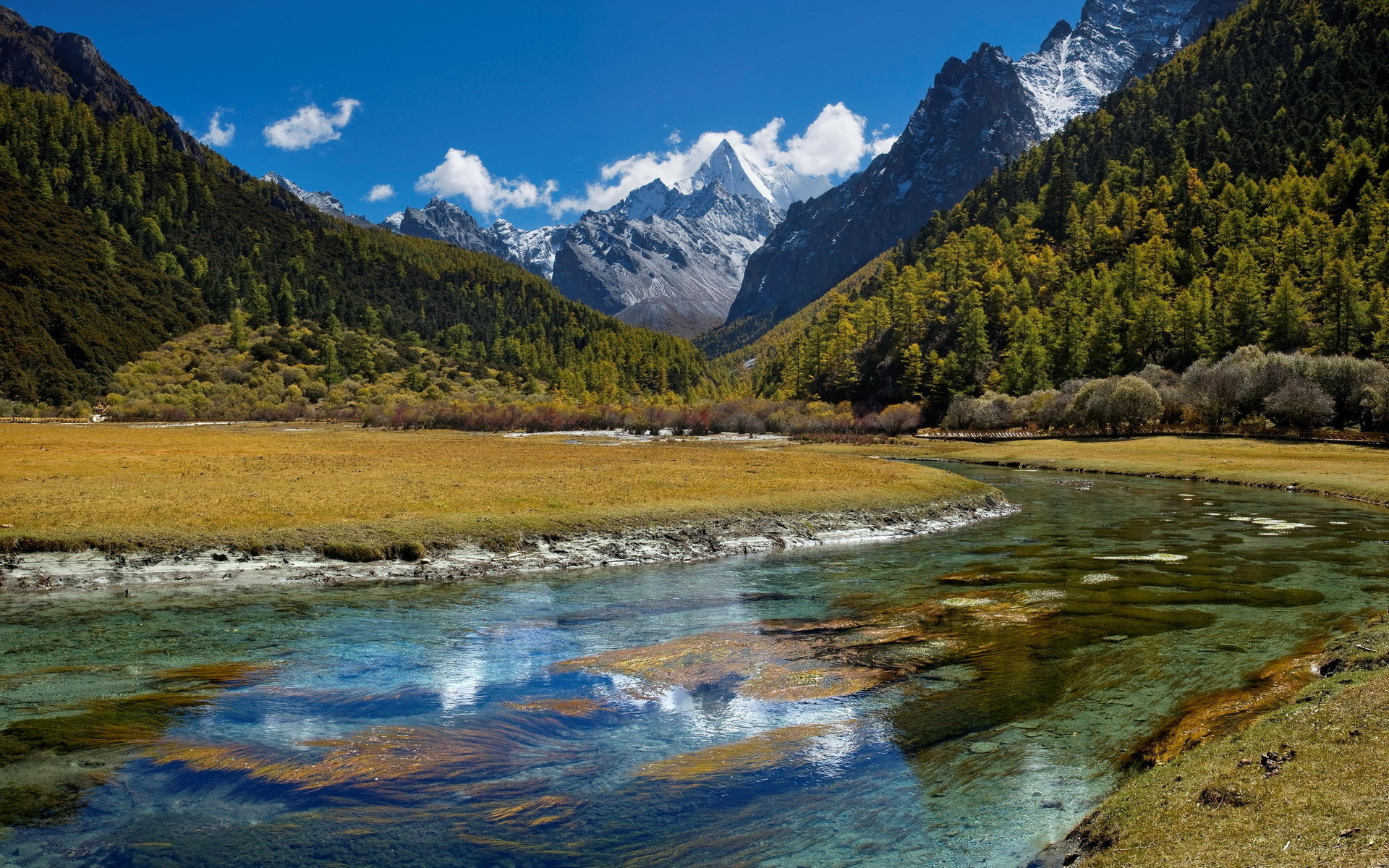 Скачать обои для рабочего стола Река бегущая от гop и фото