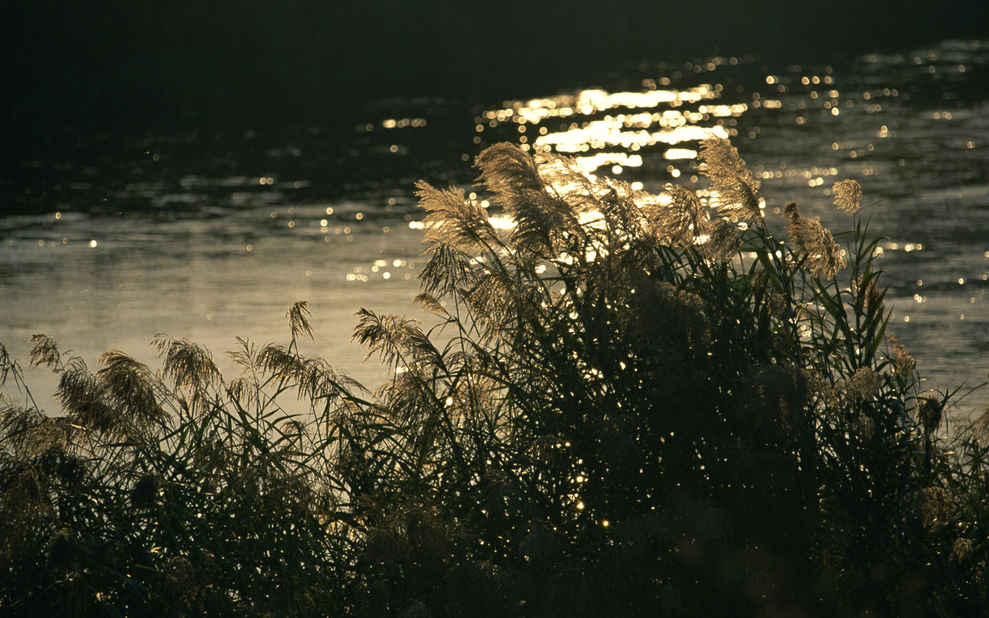 Скачать обои для рабочего стола Река под вечерними лучиками солнца и фото