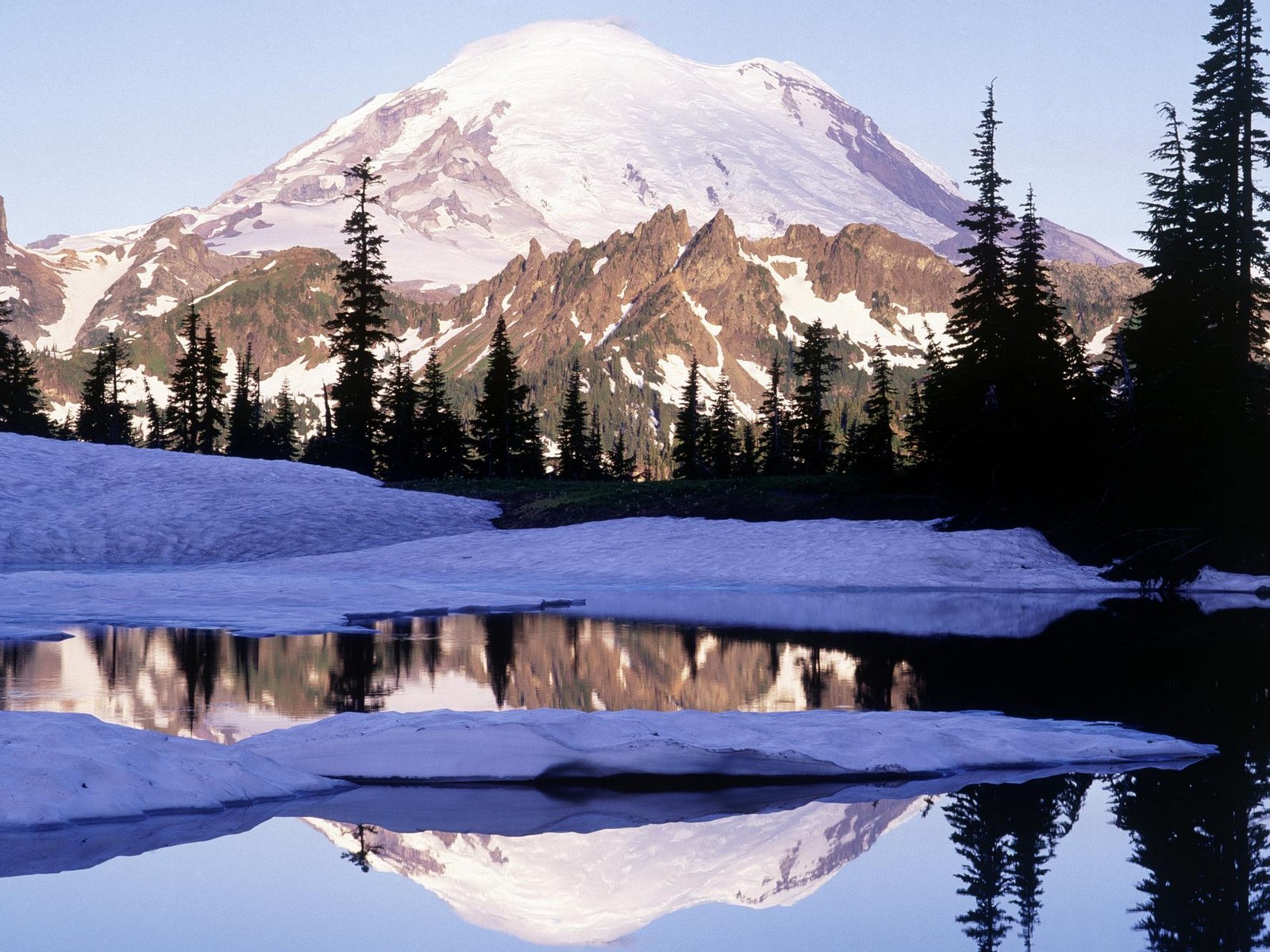 Скачать обои для рабочего стола Река, снег и горы и фото