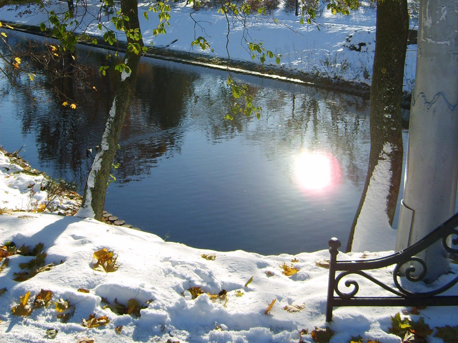 Скачать обои для рабочего стола Река в парке зимой и фото