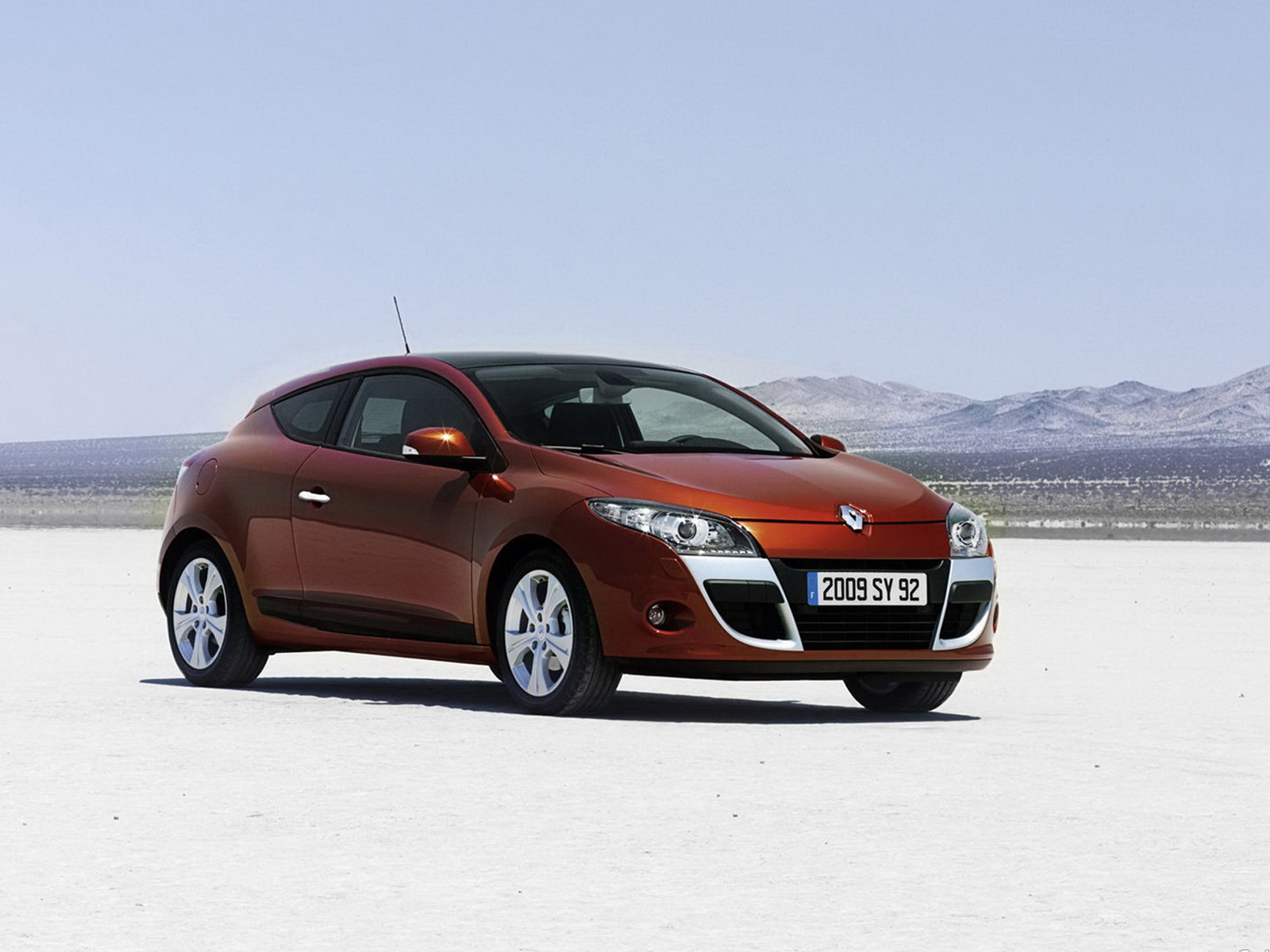 Скачать обои для рабочего стола Renault megane coupe вид авто с другого плана обзора и фото