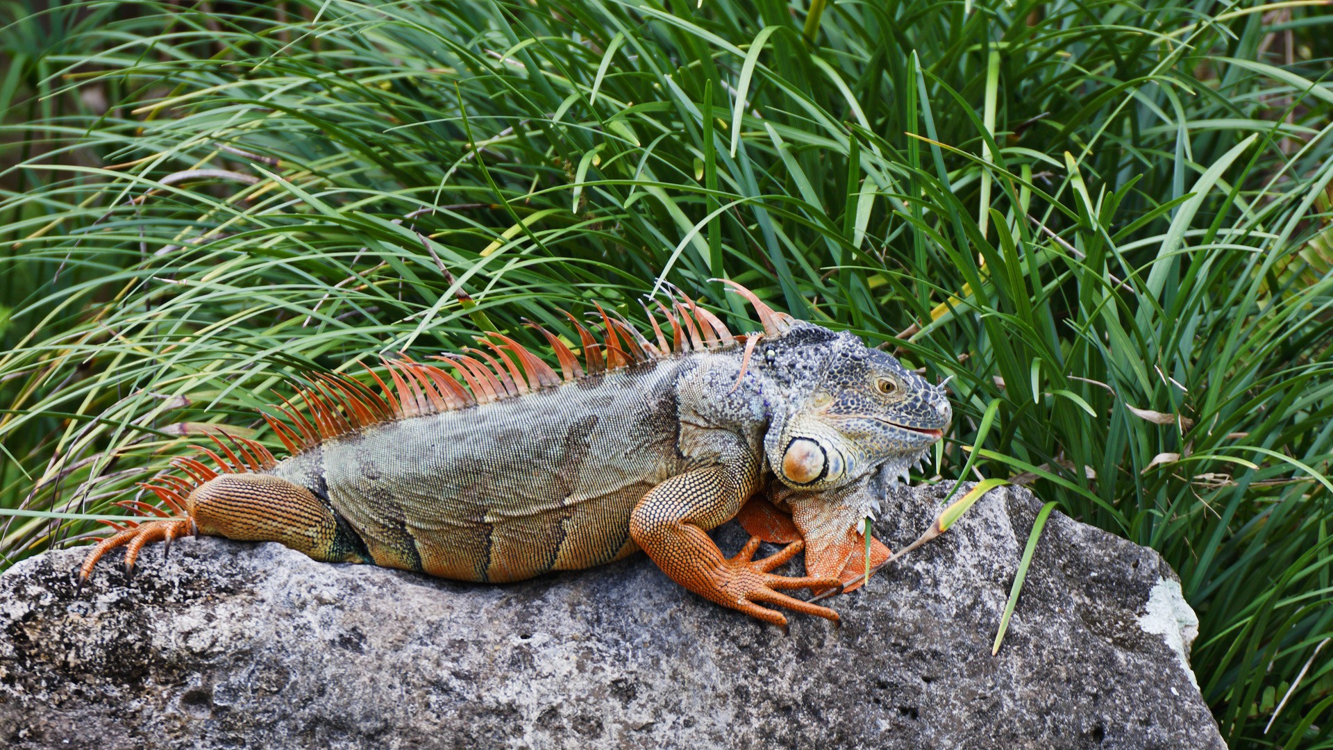 Скачать обои для рабочего стола Рептилия сидит на камнях и фото