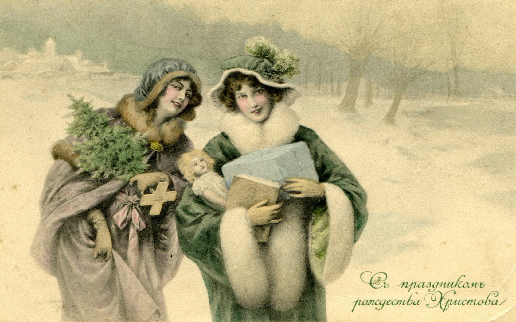 Похожие обои на Ретро открытка с рождеством: