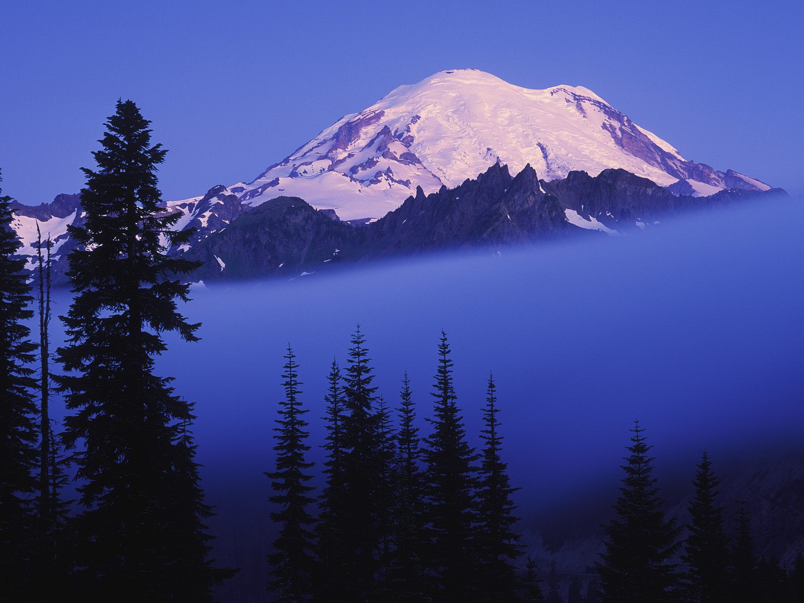 Скачать обои для рабочего стола Rising Through the Fog, Mount Rainier, Washington и фото