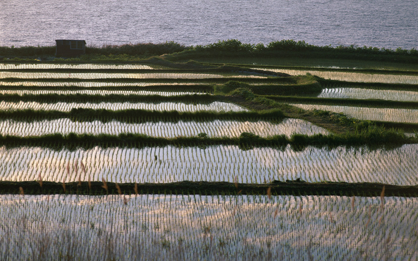 Скачать обои для рабочего стола Рисовые плантации вблизи моря и фото