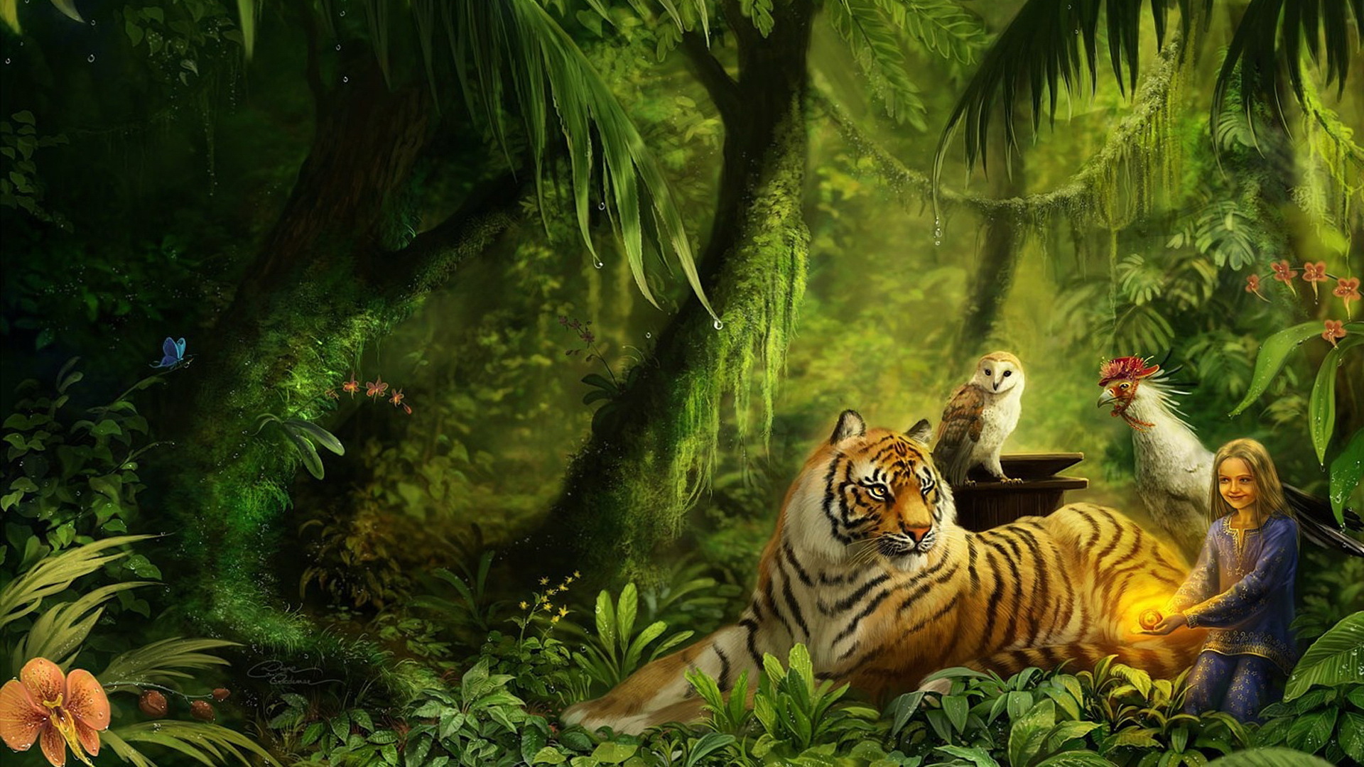 Скачать обои для рабочего стола Рисунок девочка в джунглях и фото