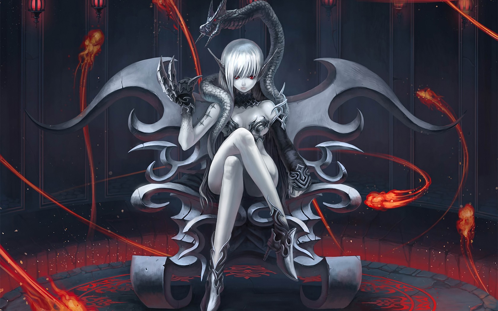 Скачать обои для рабочего стола Рисунок девушки на стуле драконе и фото