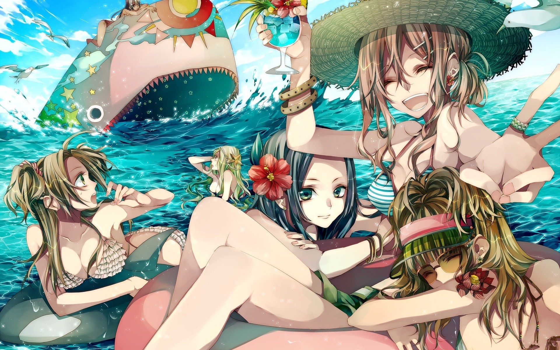 Скачать обои для рабочего стола Рисунок компании девушек на морской воде и фото