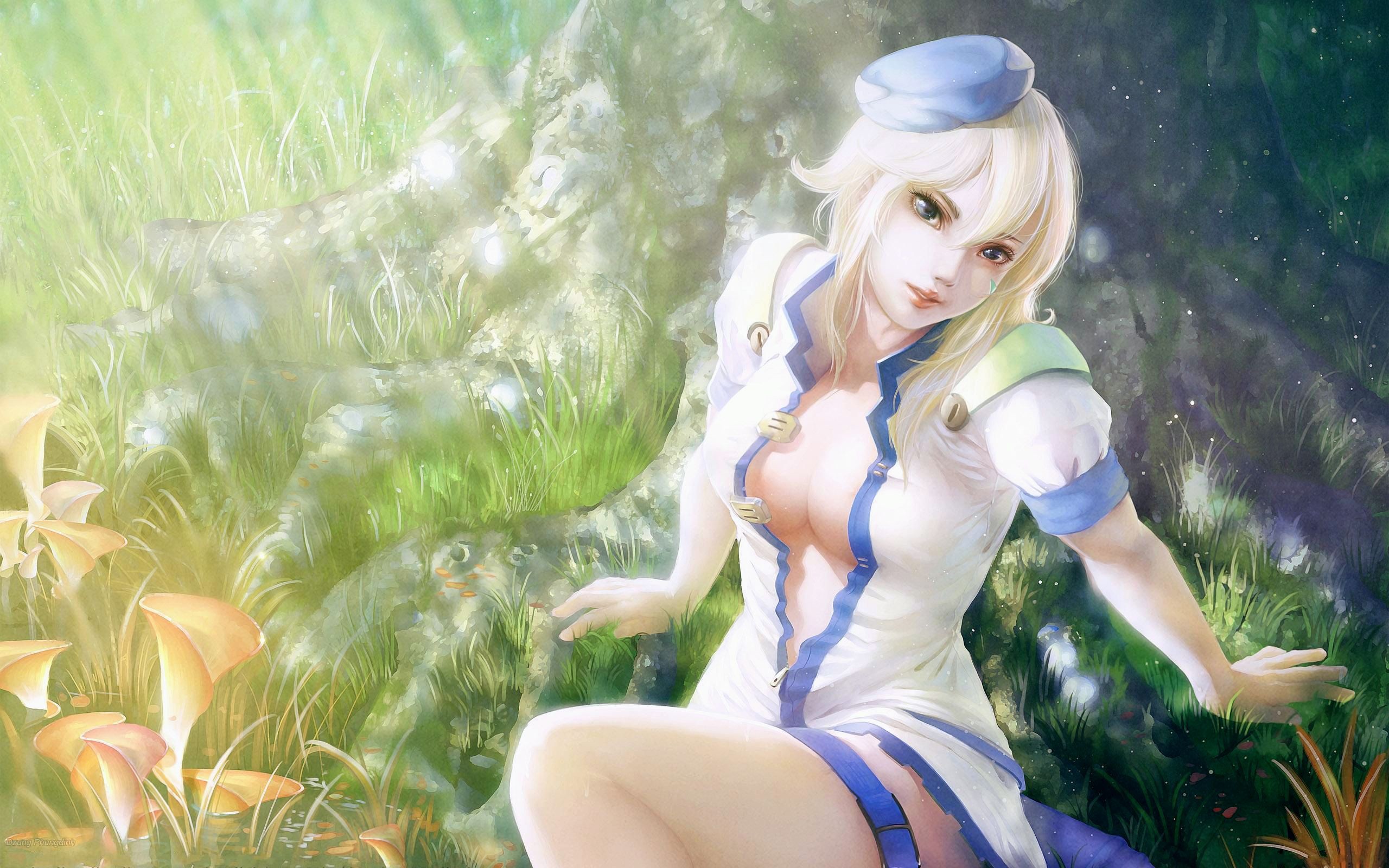 Скачать обои для рабочего стола Рисунок красивой блондинки у пруда и фото