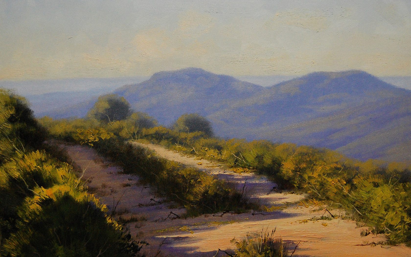 Скачать обои для рабочего стола Рисунок пейзажа у дороги в горах и фото