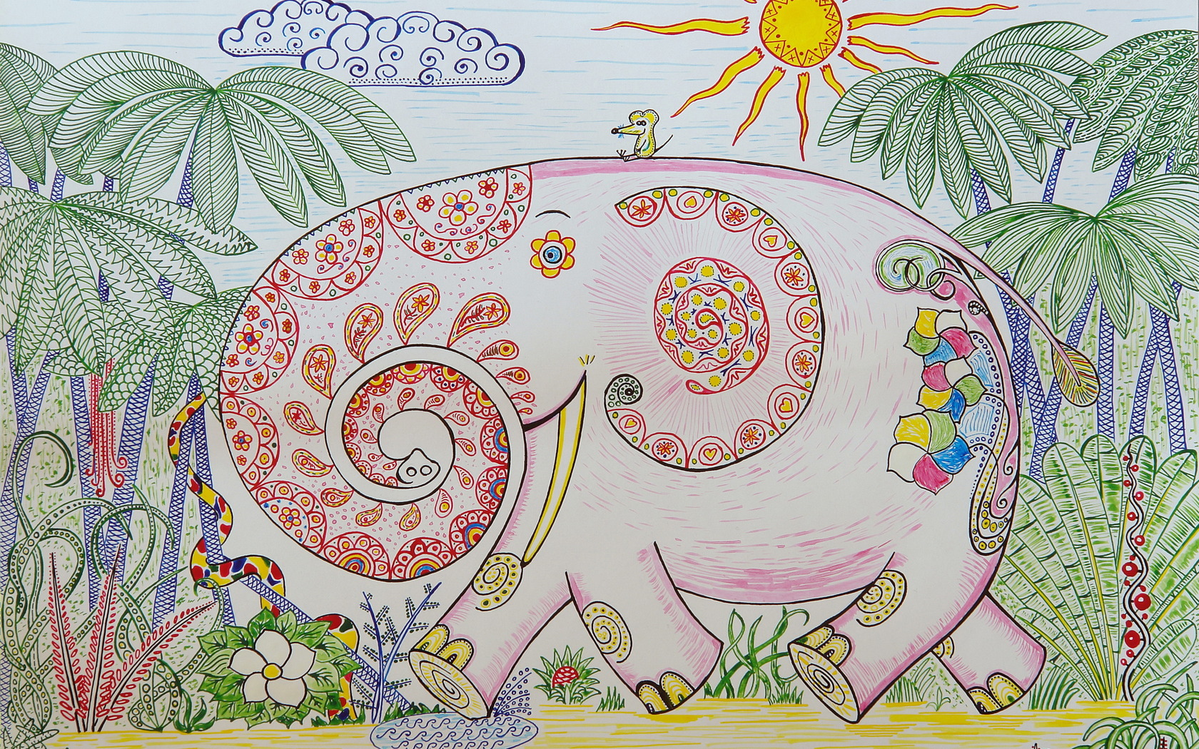 Скачать обои для рабочего стола Рисунок, розовый слон и фото