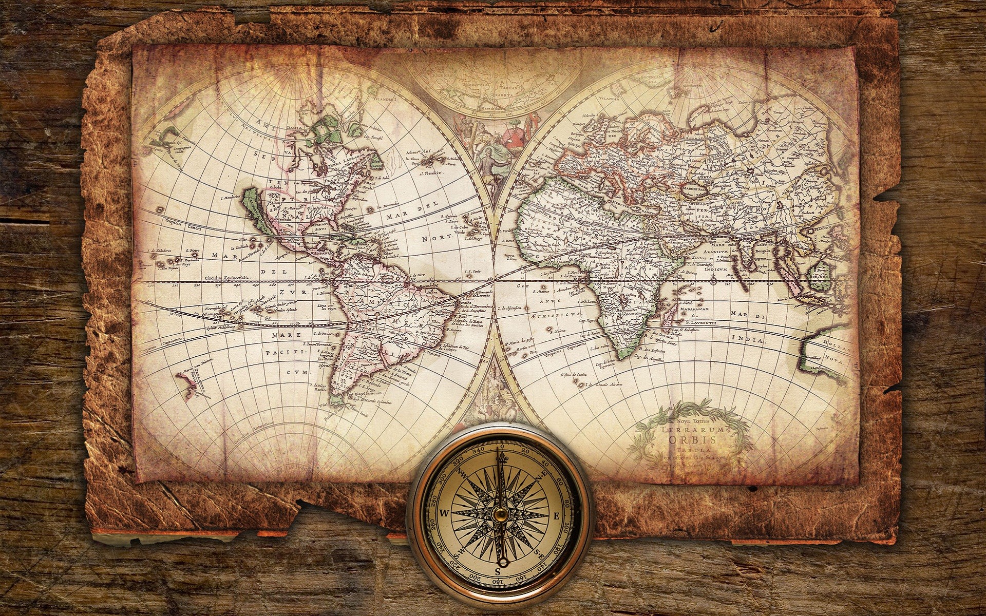 Скачать обои для рабочего стола Рисунок старинной карты и компас внизу и фото