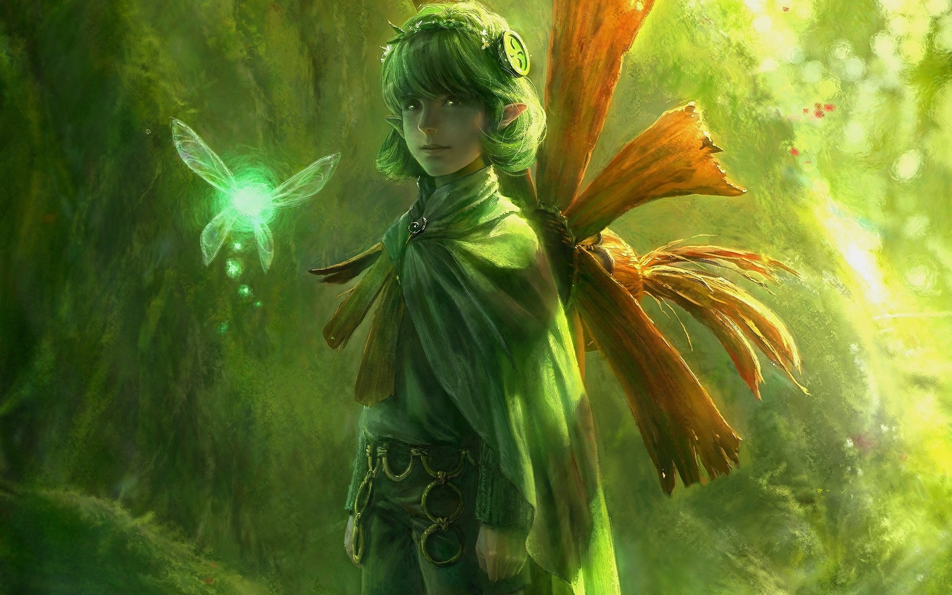 Скачать обои для рабочего стола Рисунок зеленого эльфа и фото
