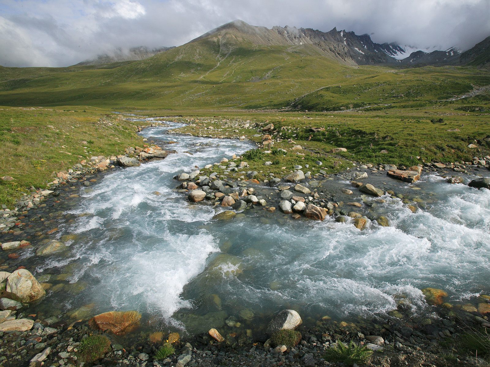 Обои River Flowing Through Steppe, Kyrgyzstan