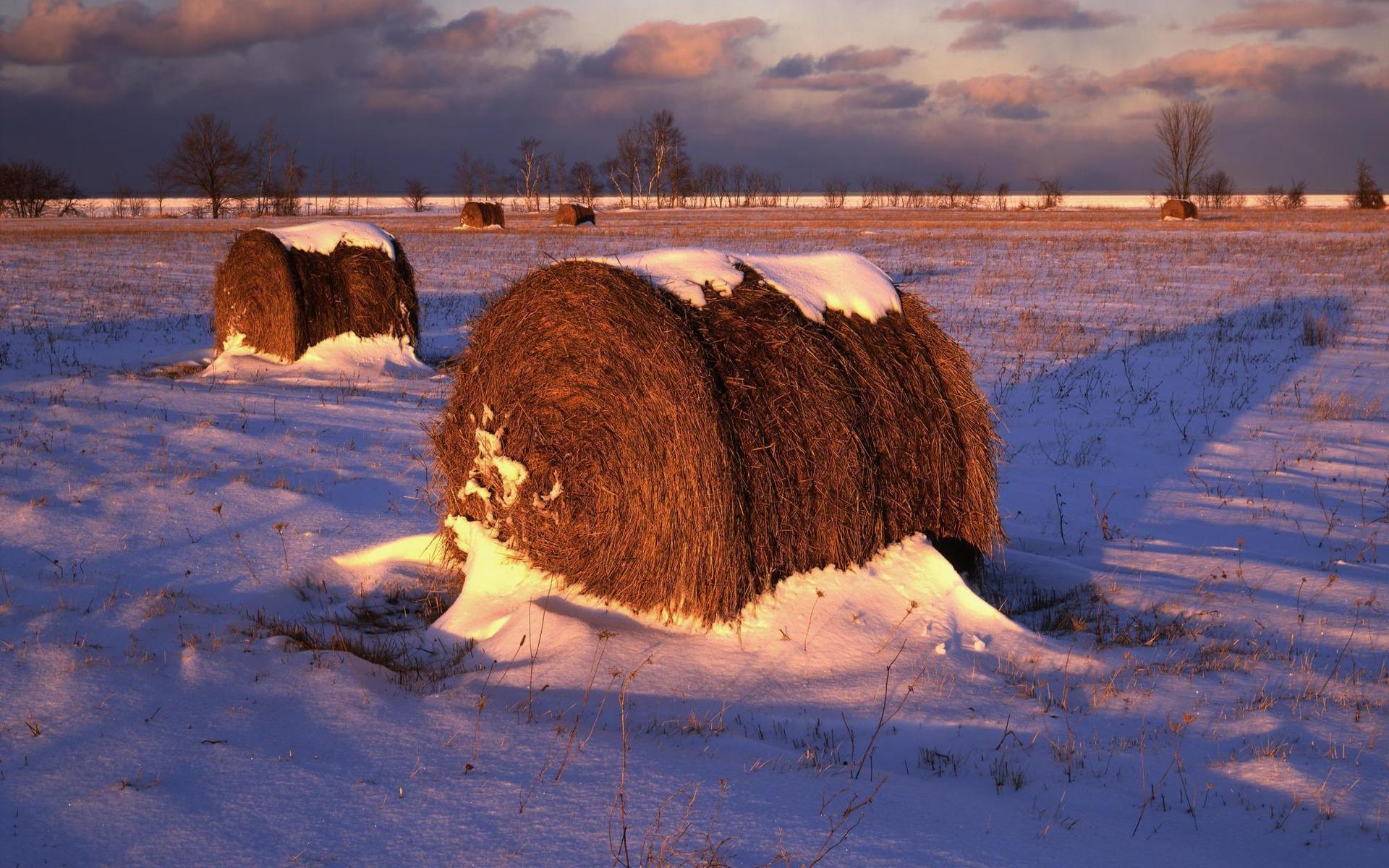 Скачать обои для рабочего стола Ролы сена оставшиеся зимовать на поле и фото